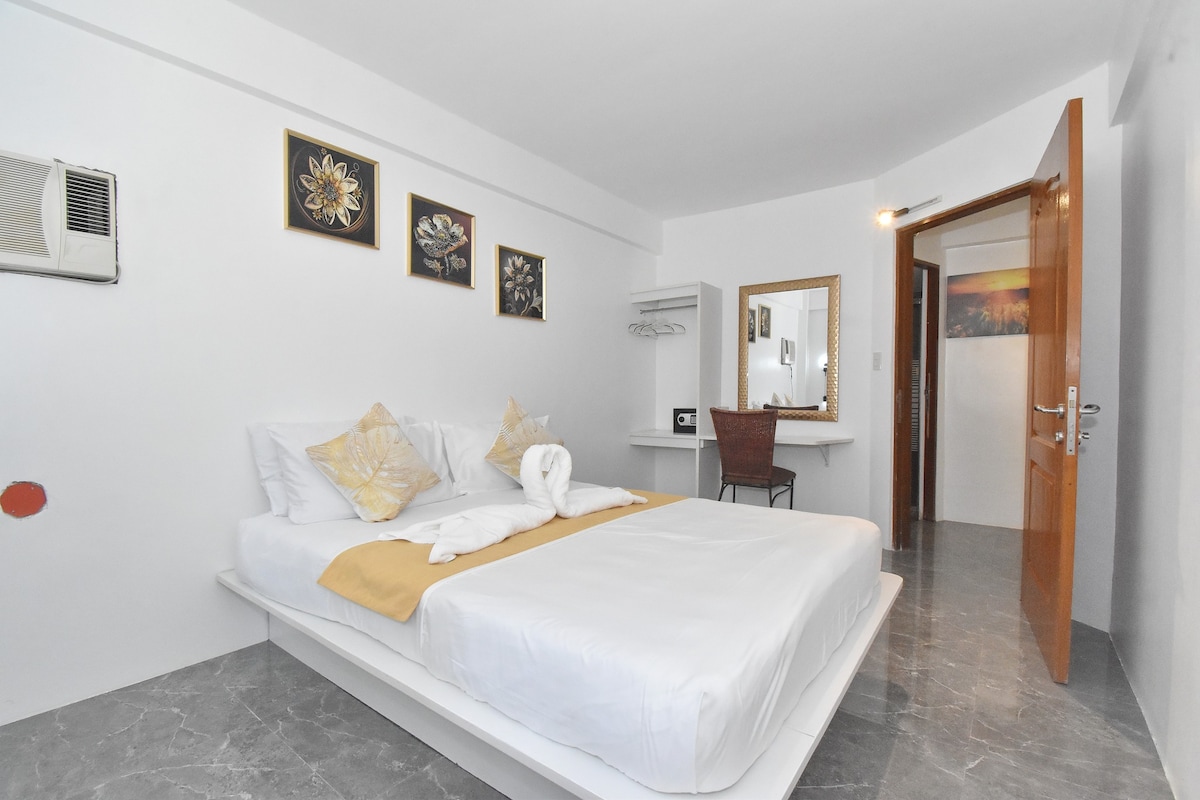 Walk everywhere: 1 min to Bulabog Beach, 4 mins to D’Mall, then 3 mins more to White Beach. Surrounded by bars, restos, and budget-friendly eats. Enjoy fast 100Mbps fiber Wi-Fi, 43” Android TV w/ Netflix, and a private bath with heated shower. Chill at our shared rooftop kitchen + garden—perfect for coffee or a cold beer.