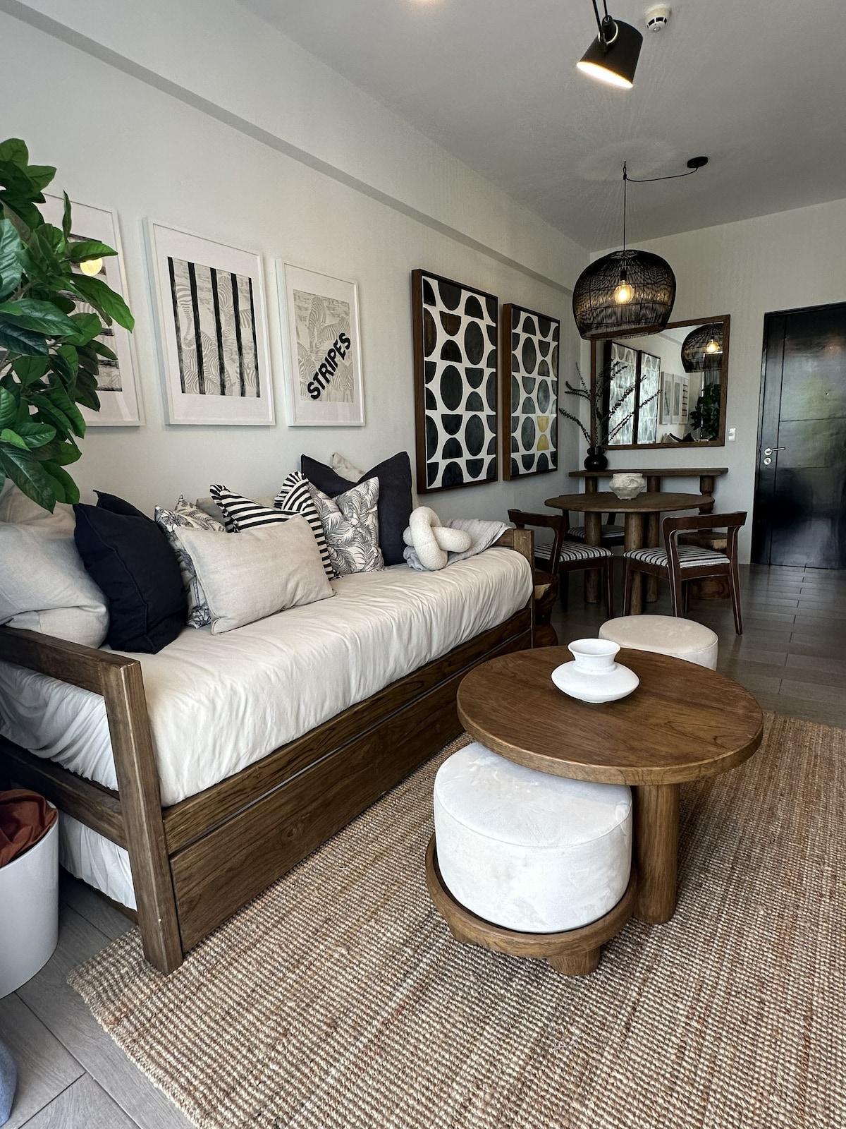 High Ceiling Studio Apartment in Station 3 w/ partial SEAVIEW! Unit Highlights → Cozy Apartment w/ partial seaview. → with Kitchen & Dining → Perfect for Family → ★ ★ ★ ★ ★ 5Star Rating! → Less than 30 secs walk to the famous white beach. Location → Part of BEACHFRONT apartment complex in Station 3 → This is the best location to experience the "old Boracay," away from the tourist crowd in a quieter and more pristine setting. → The neighborhood is preferred by many Westerners to stay long term.