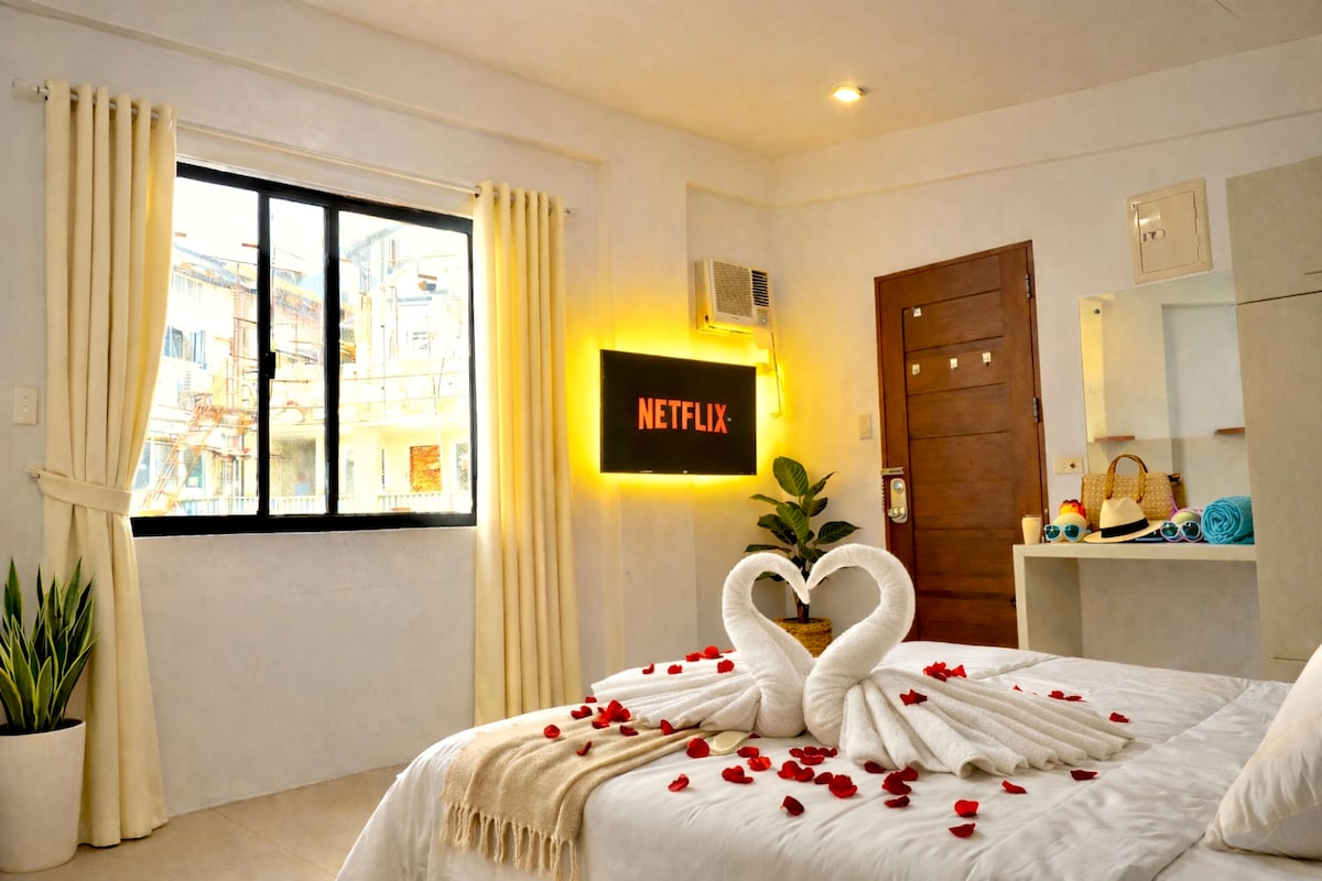 Stay right in the center of Boracay 🌴 • 1 minute walk to D’Mall 🛍️ • 5 minutes to White Beach 🌊 • 4 minutes to Bulabog Beach 🏄 Located directly across D’Mall in Station 2, this spacious Deluxe Room is perfect for couples, families, or groups of up to 6 guests You’re surrounded by restaurants, cafés, bars, convenience stores, and transport. Everything is walkable 🚶♂️ No need for tricycles. Clean. Spacious. Prime location. ✨