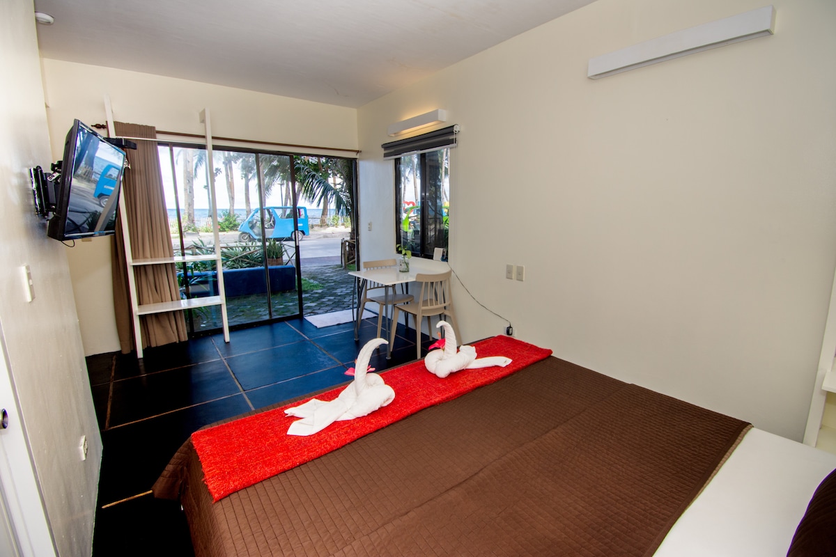 This beachfront hotel situated at Station 3 radiates a laid-back yet chic atmosphere, perfectly positioned to provide stunning views and direct access to the white sandy shore. Framed by towering palm trees, the hotel’s modern façade features a bright white 2 storey building that offer guests a relaxing retreat. We have around 24 newly renovated rooms equipped with smart TVs, ACs, hot and cold shower and Queen sized high quality mattresses.
