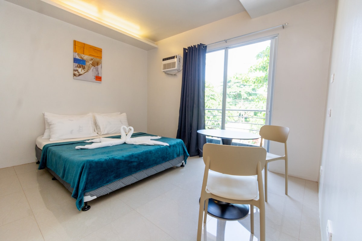 Spacious room – Perfect for 2 Guests This fully equipped unit includes: air conditioning private bathrooms with hot showers terraces Smart projector with access to your own streaming accounts (Netflix, YouTube, etc.) High-speed Wi-Fi Fully furnished kitchen with all essentials (SHARED) Conveniently located: 2 minutes walk to Bulabog Beach 10 minutes walk to D'Mall 12 minutes walk to the famous White Beach 14 minute walk to our partner’s swimming pool—free for our guests