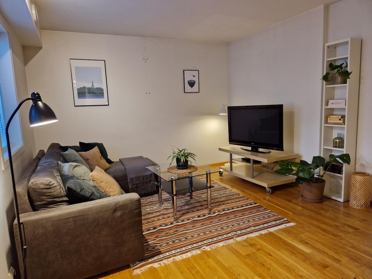 Cozy studio apartment near SUS Stavanger Universitetssykehus. 40 square meter apartment for rent, 25 minutes walk from Central Stavanger. The Apartment have 1 bedroom and the livingroom has a sofa bed .The bathroom is modern with a heated floor, shower, toilet, sink and a washing machin and dryer. Clean towels and bed linen. Wifi and cable TV is for free. Own kitchen with tools, etc. 2 min walking to grocery store, gas station and bus stop. Shopping mal Kilden is only a 10 min walk.