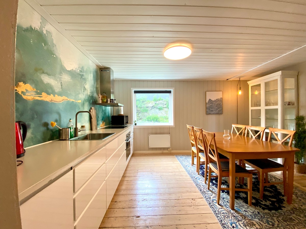 Preikestolen 10 minutter til parkering. Les anmeldelsene fra tidligere gjester. Utsikten er slående, stedet er skjermet fra trafikk og støy. Sol til klokken 22:20 på de lengste dagene. Slå dere ned i flere dager og gå på flotte turer og fjelltopper fra utgangsdøren. Fem minutter fottur unna kan du bade i en elv med friskt fjellvann. Kort avstand til Jørpeland sentrum (10 minutter gange, 5 min å kjøre) med alle nødvendige butikker tilgjengelig. Insta espen.brekke er det diverse turtips