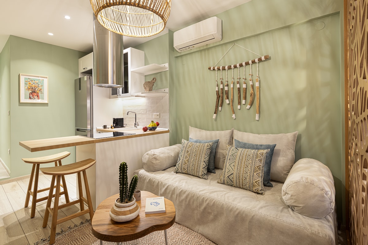 Stylish studio apartment, finished renovations in January 2023 Smart boho design with wooden finishes, every commodity provided Premium, luxury mattress, high speed internet, private Netflix account Nespresso machine washer/dryer are but a few of our amenities! Amazingly central location in Ladadika,the most vibrant neighborhood of Thessaloniki’s life. Great access to every hot spot in the city, 5 minutes from Aristotelous square 2 from the harbor and seaside.