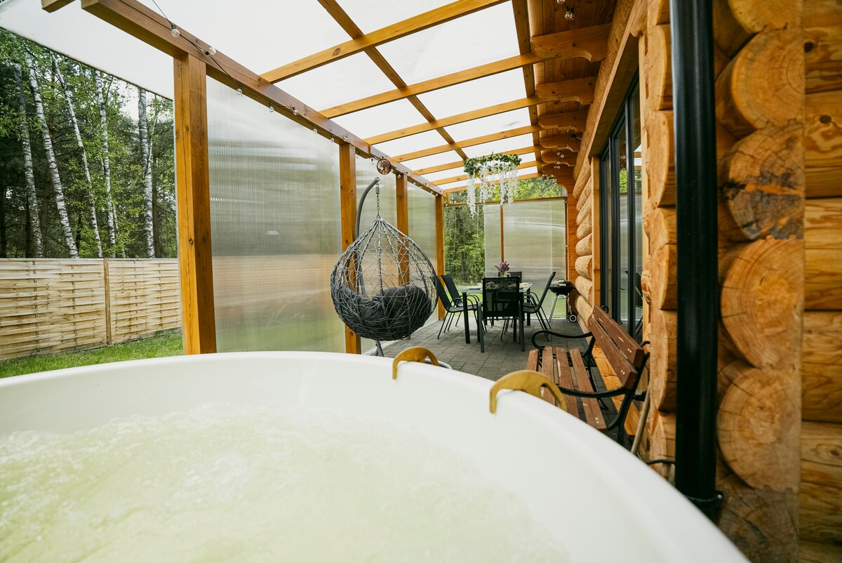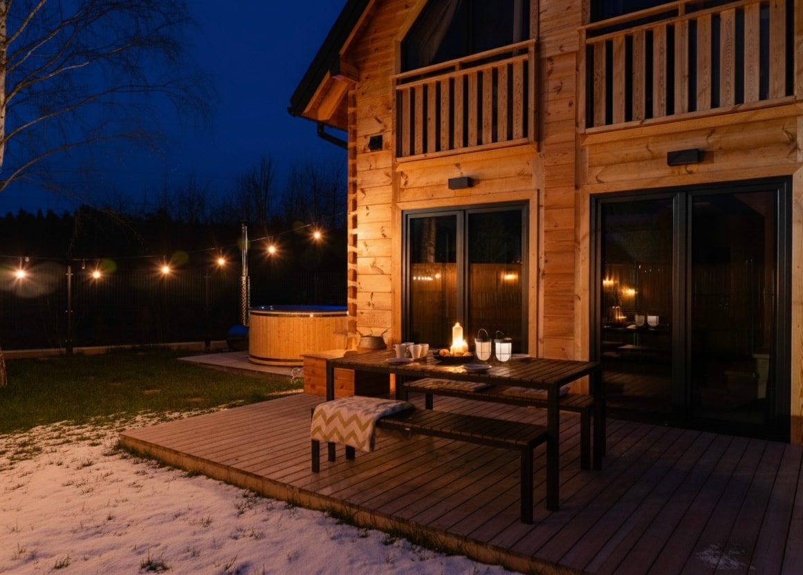 Komfortowa i stylowa przestrzeń, stworzona z myślą o rodzinnych wyjazdach z dala od miasta lub komfortowym weekendzie z przyjaciółmi, a także romantycznym pobycie tylko we dwoje. Salon z kominkiem sprawi, że podziwianie jesiennych krajobrazów będzie jeszcze przyjemniejsze. Ty decydujesz, czy relaksujesz się na kanapie czy w prywatnym jacuzzi? Znajduje się ono na tarasie, z którego korzystasz ile chcesz. Chill House zaprasza na wyjątkowy relaks z zapachem lasu w tle!
