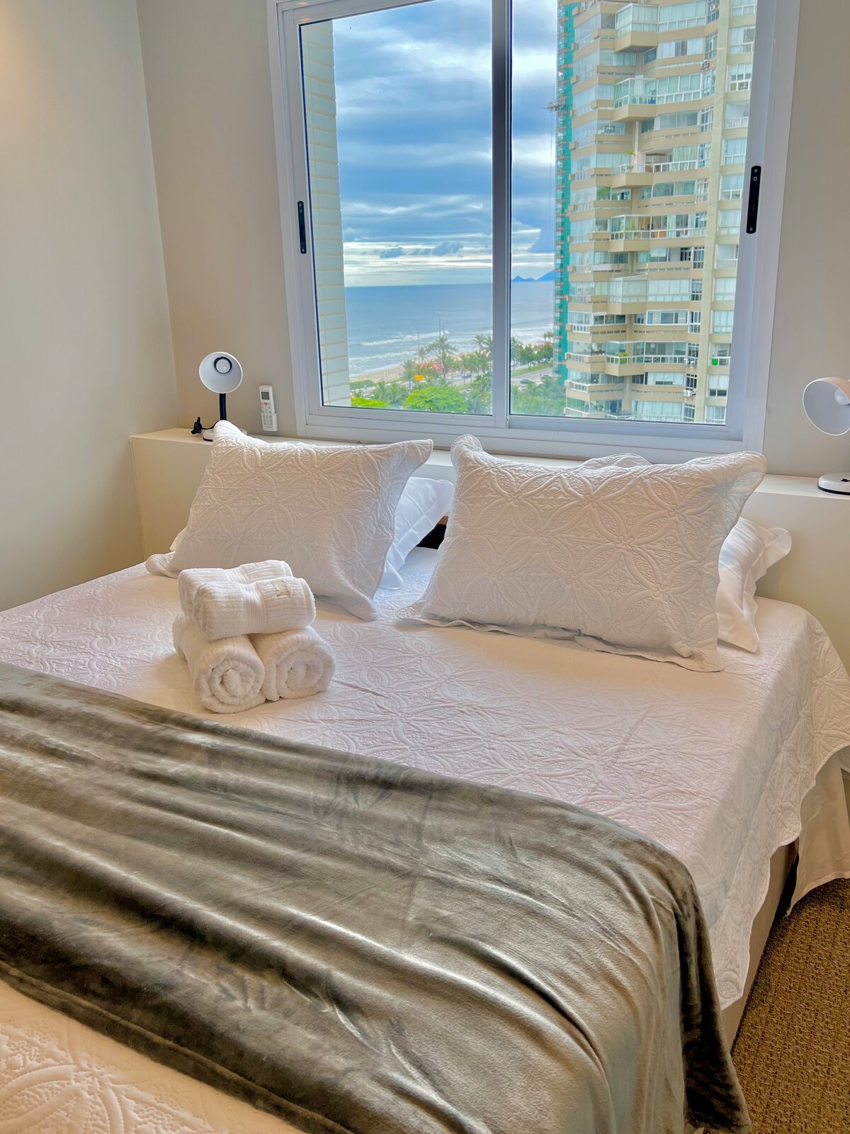 Apartamento pé na areia em frente à praia da Barra da Tijuca (Posto 7). 2 quartos, 2 banheiros. Acomoda 7 hóspedes (1 cama queen, 1 cama de solteiro, 1 cama de casal e 1 sofá-cama casal). Ar-condicionado em todos os cômodos (inclusive na sala) e uma máquina lava e seca. Mobiliado, com roupas de cama, toalhas, cadeiras de praia e guarda-sol. Vaga coberta. Wi-Fi 200mb. Piscina, academia e brinquedoteca recém reformada (Outubro 2025)
