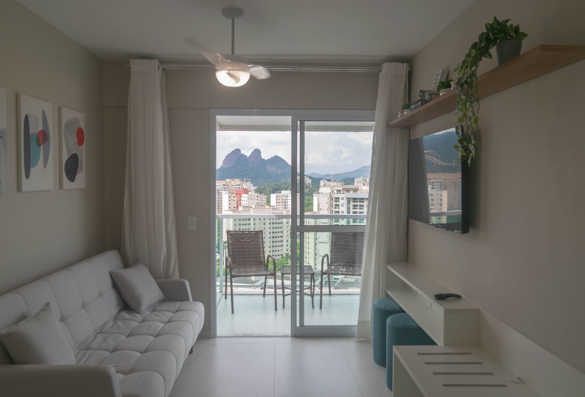 Modern flat in the Rio Stay condominium, ideal for leisure, work, or events. Accommodates up to 4 guests, with two single beds that can be joined into a double bed and a sofa bed (ideal for 1). In the flat: • Coffee maker • Air conditioning • Microwave • Water purifier • Refrigerator • Smart TV • Complete bed linen and towels • Private bathroom • High floor and quiet Condominium: • 24h front desk • Swimming pool • Gym • Free parking Near: • Riocentro • Jeunesse Arena • Rock in Rio