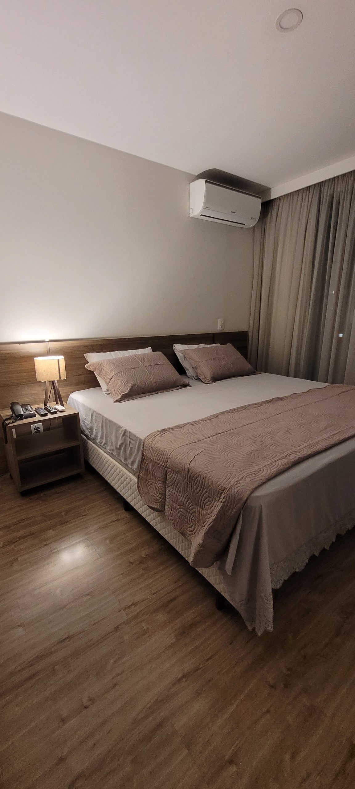 O apartamento é claro, arejado e cuidadosamente preparado para oferecer conforto. Dispõe de duas camas de solteiro que podem ser unidas, formando uma cama de casal, além de TV a cabo, ar-condicionado, armários e cozinha equipada com frigobar, micro-ondas, cafeteira, filtro de água, fogão de indução e sanduicheira. Ideal para quem viaja a lazer ou a trabalho. O condomínio oferece infraestrutura de excelência, com piscina, sauna, academia e restaurante.