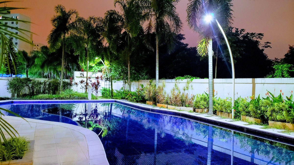 Flat moderno e aconchegante, reunindo o conforto de um hotel com a liberdade de um lar. Ideal tanto para quem viaja a lazer quanto a trabalho, o espaço conta com uma suíte com cama queen, ar-condicionado, Wi-Fi, TV, cozinha e varanda. O condomínio oferece uma excelente infraestrutura: academia, piscina, sauna, jacuzzi e restaurante com preços acessíveis. A localização é privilegiada, a apenas 100 metros do RioCentro, garantindo praticidade e fácil acesso a diversas atrações na Barra da Tijuca.