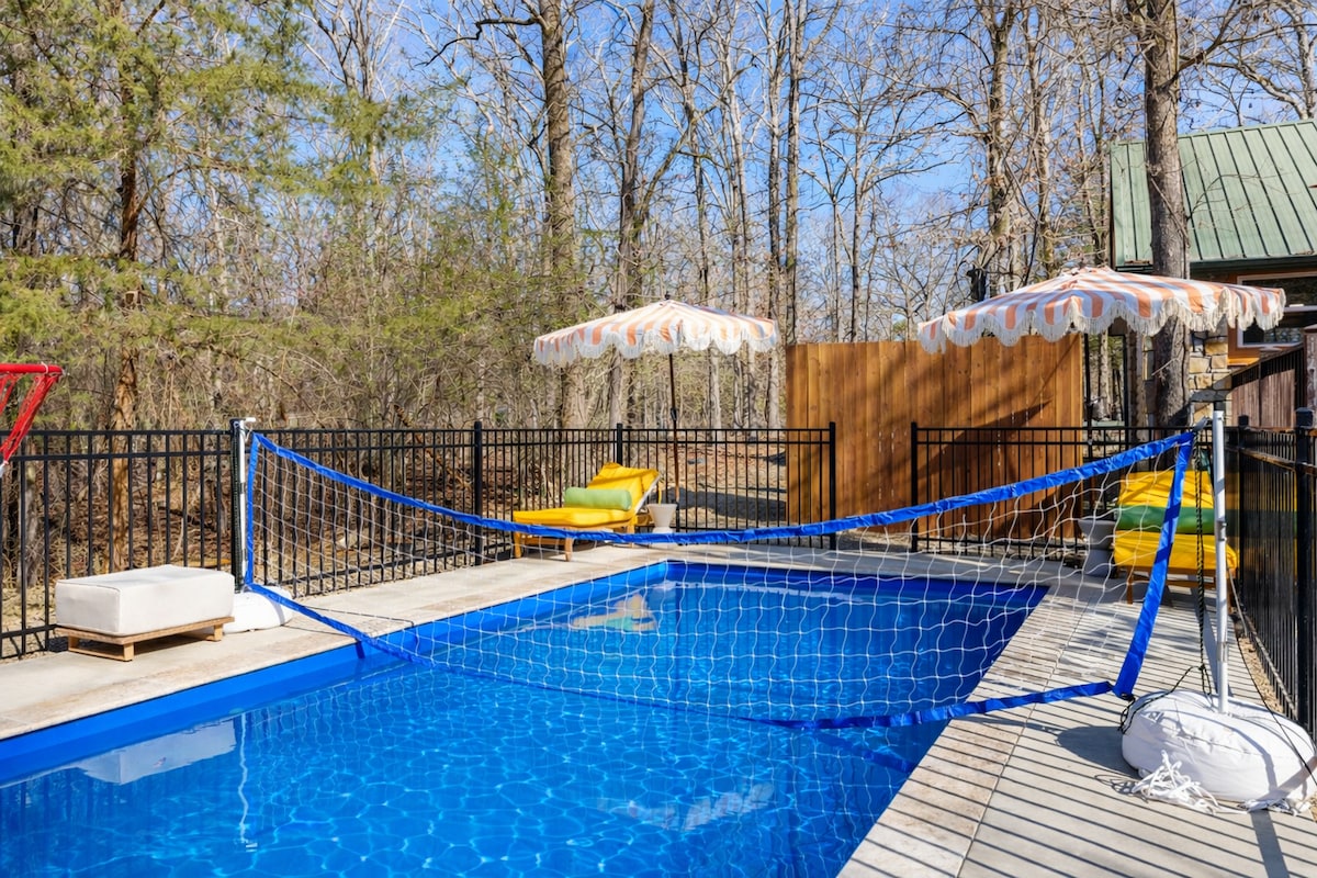 Welcome to The Antlered Sasquatch — a peaceful, spacious retreat set on a full acre of private property. This one-of-a-kind getaway features an indoor pickleball court, a private pool with basketball hoop and volleyball net, a dedicated yoga studio, plus cornhole and disc golf for nonstop fun. Perfect for families and groups, it blends relaxation, recreation, and unforgettable experiences all in one place. Forget your worries in this spacious and serene space.