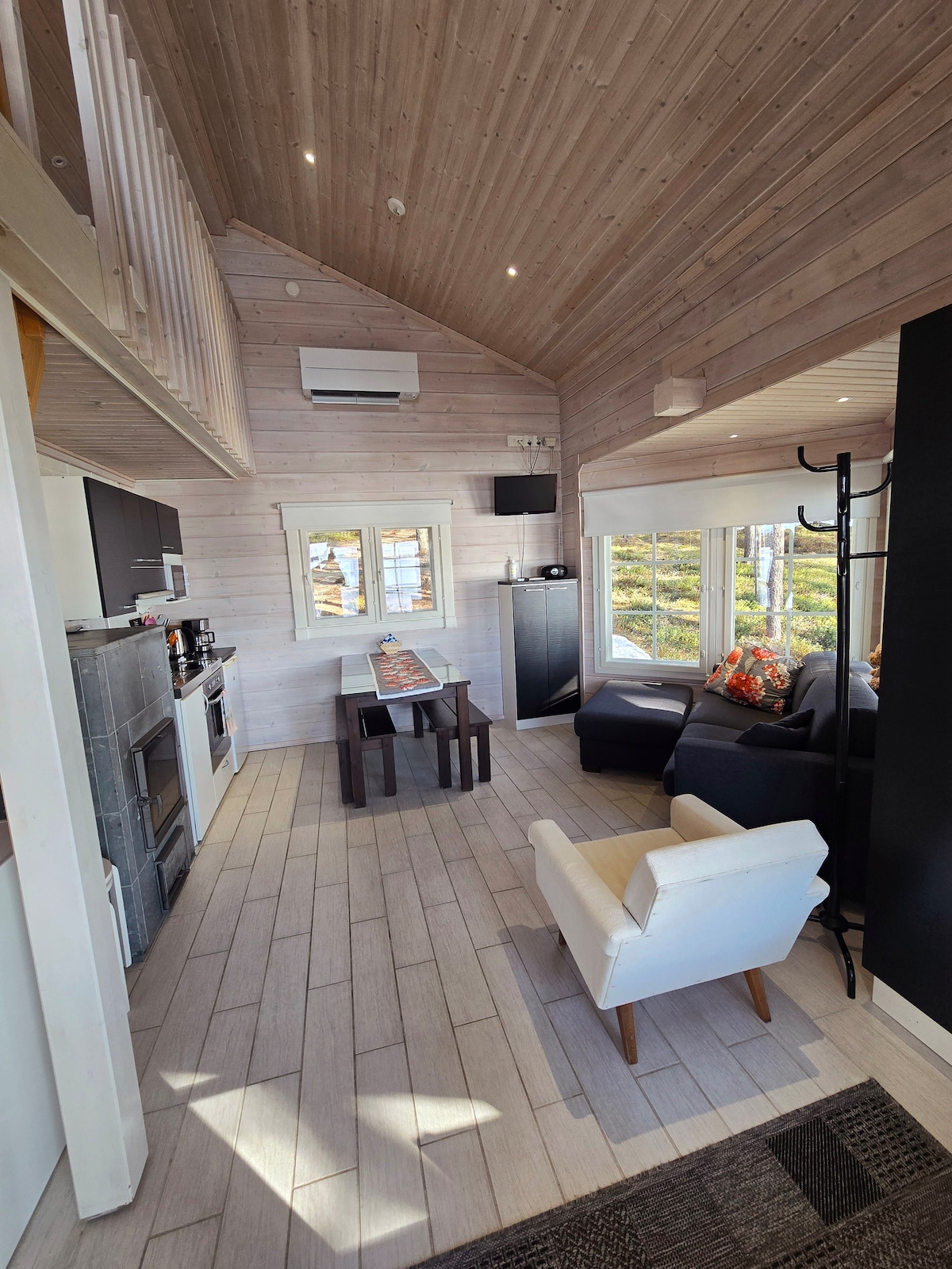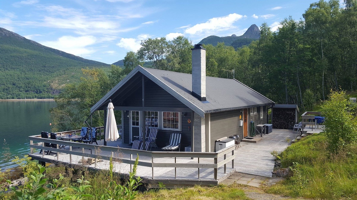 Well equipped cabin by the sea in with a view to Lofoten. Very quiet area on the countryside perfect for nature lovers. Just 350 meters from E6 and 5 km. from Skarberget ferry port. Great scenery, climbing possibilities and hiking terrain. Large terraces, barbecue area and private beach. The fjord is also known for salmon fishing. 20 km. to Stetind, Norways national mountain. There will also be a small boat to use for short trips on the sea.