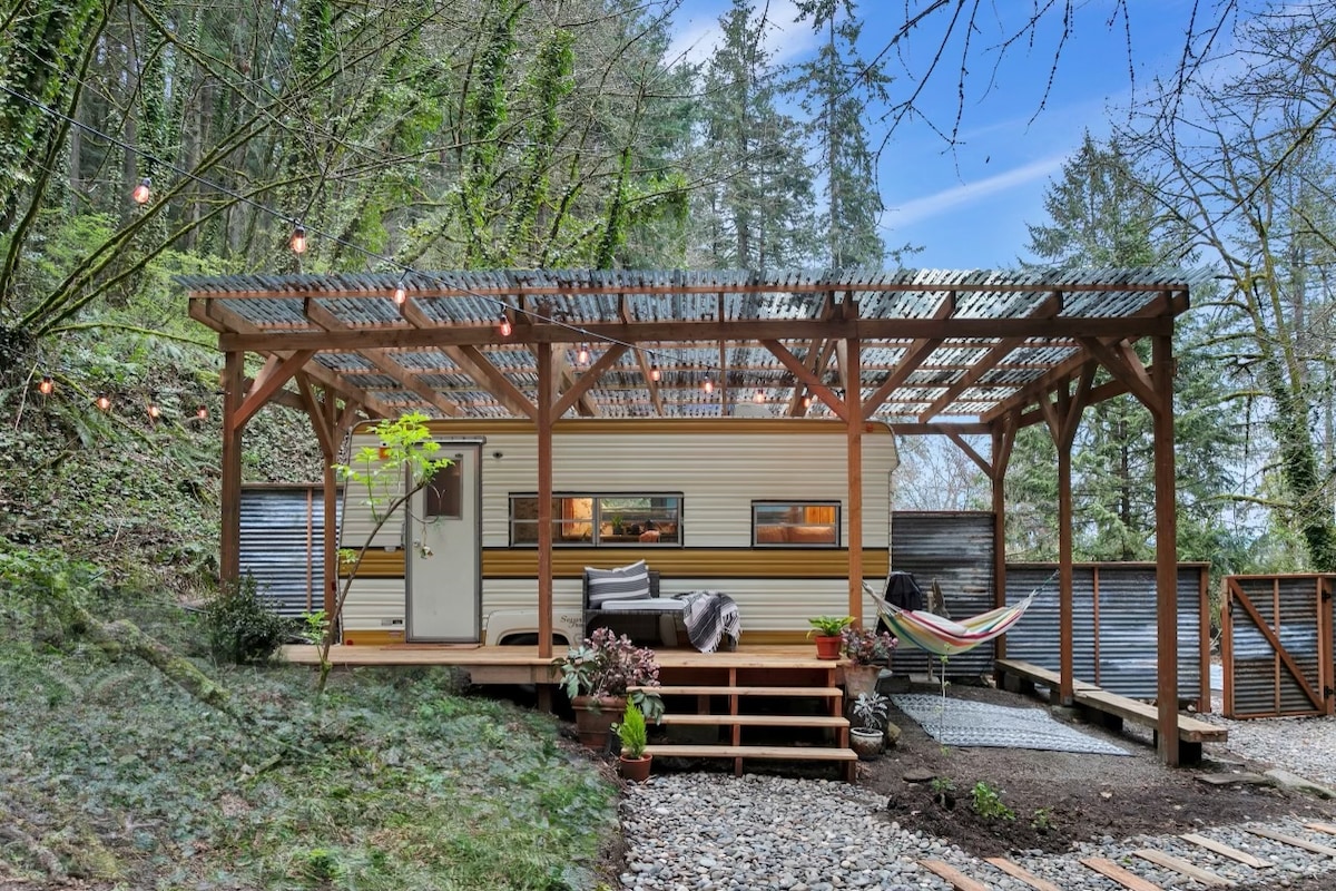 Warm & cozy vintage trailer nestled next to Forest Park. Enjoy a fire pit, covered patio, uninterrupted forest vista, and hot, dreamy outdoor bath. Minutes to the center of PDX by car, rideshare, or bus. Comfortable, easy, & whimsical camping experience. Forest Park trail is steps away, Sauvie Island and the historic Cathedral Bridge are 5 minutes by car, and 10 minutes to Slab Town and Alphabet District. The beauty and privacy of this spot may make it hard to venture out. IG: @lilpoppypdx