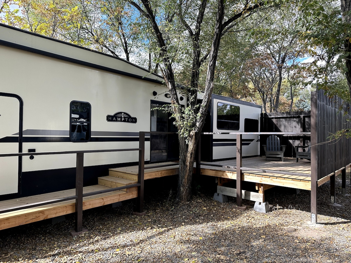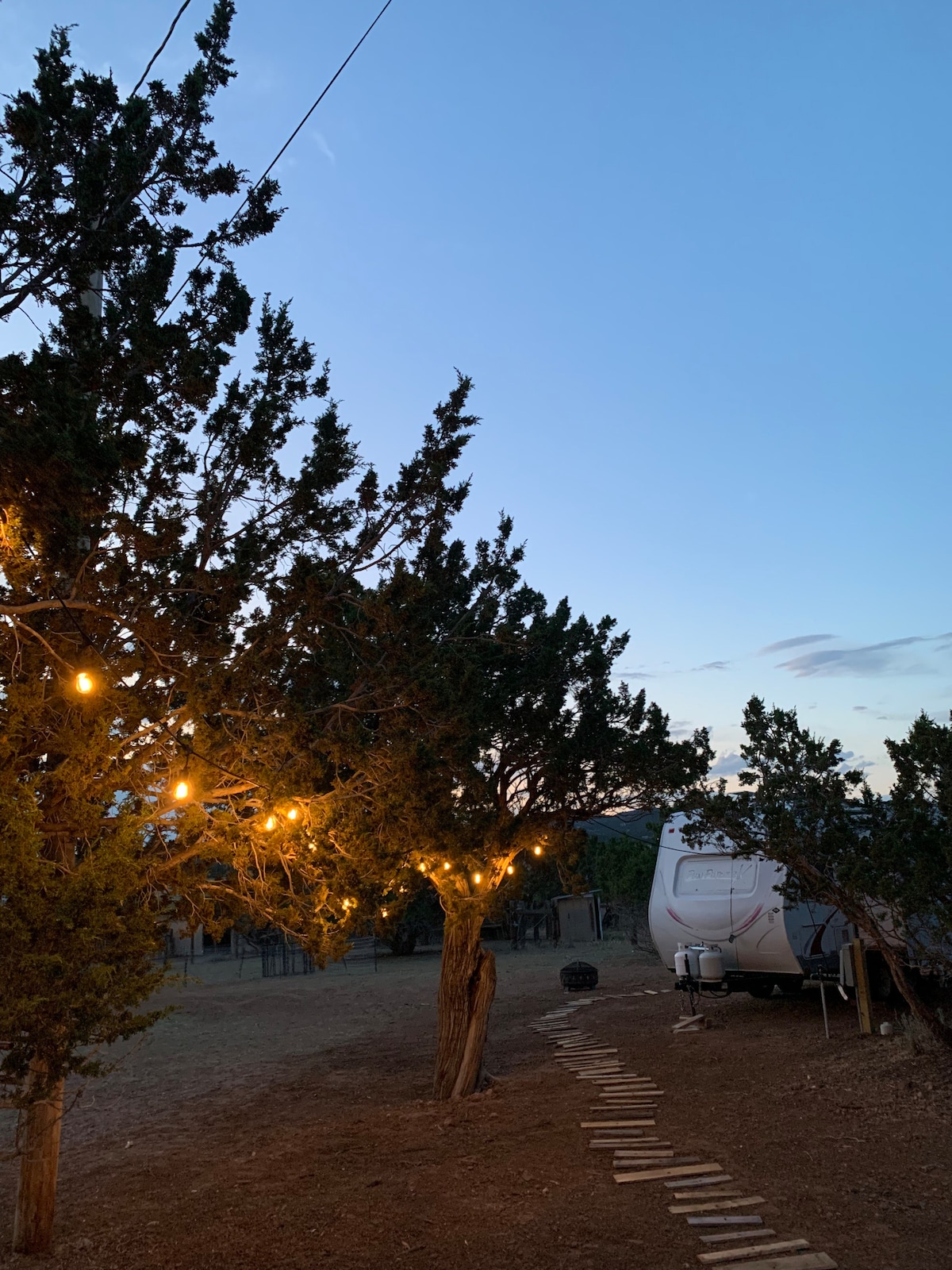 This fully renovated 5th wheel has everything you need, plus No Cleaning Fee! Situated on a hilltop in a quiet foothill neighborhood, you'll have a lovely view of our little valley and mountains. It sports a full kitchen with basics for cooking, RO for purified water, fridge/freezer, coffee maker & , Amazon Fire TV, WIFI, small but well equipped full bathroom, natural latex queen sized bed, AC & heat. Enjoy coffee and fresh eggs, and while you watch the pigs and chickens graze below.