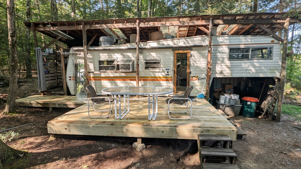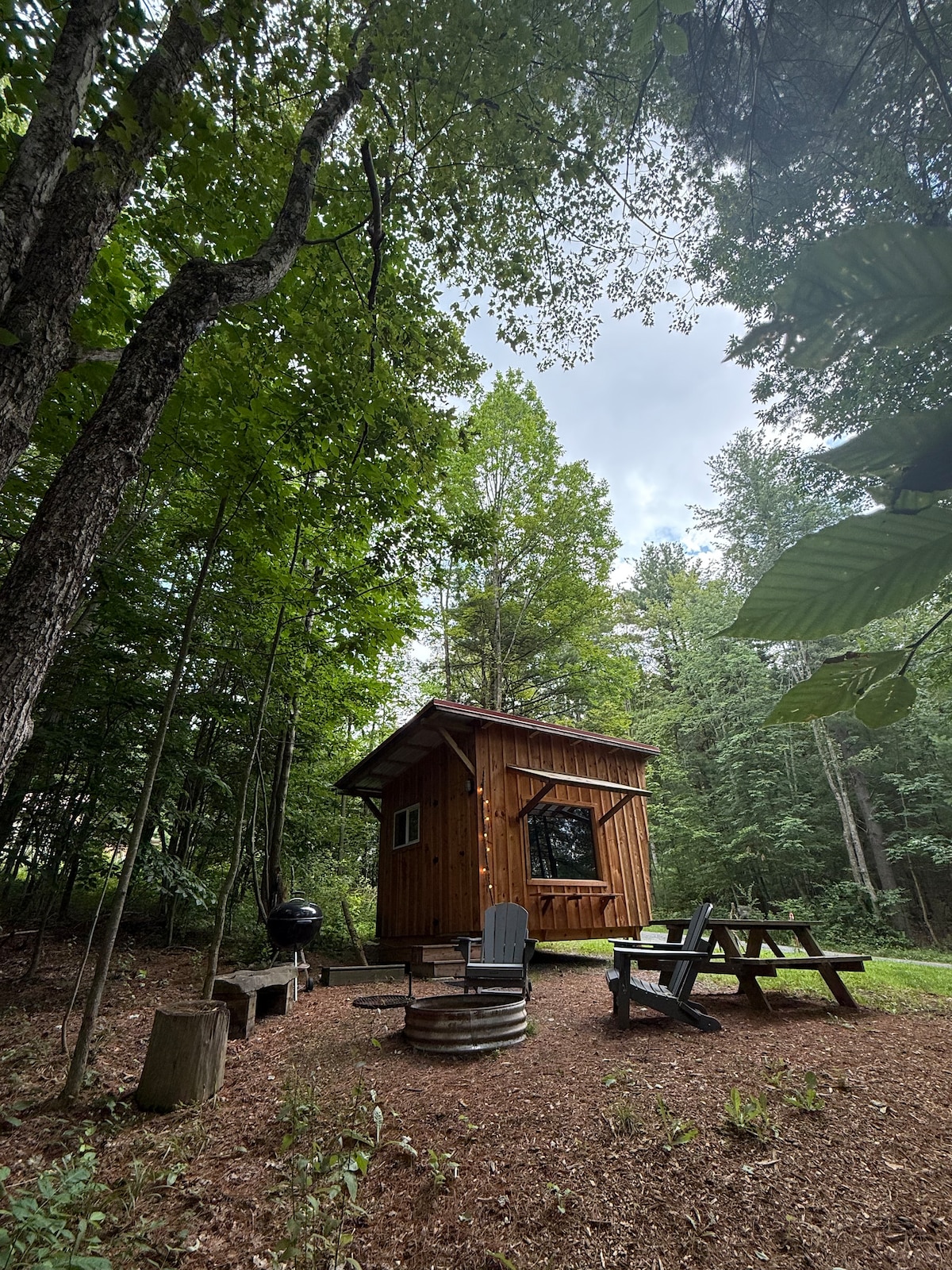 Enjoy a converted camper as your private getaway in Southern VT. Less than 10 min to downtown Brattleboro, yet nestled in the woods for a quiet retreat. Full galley kitchen and living/lounge area. Wood stove for primary heating (electric backup for not so cold days). Outdoor spaces include a fire pit, deck, pool table, hot outdoor shower, outhouse (composting toilet), and forest for galavanting. The place is a perfect fit for two adults (queen bed) and one kid (63" long fold down couch).