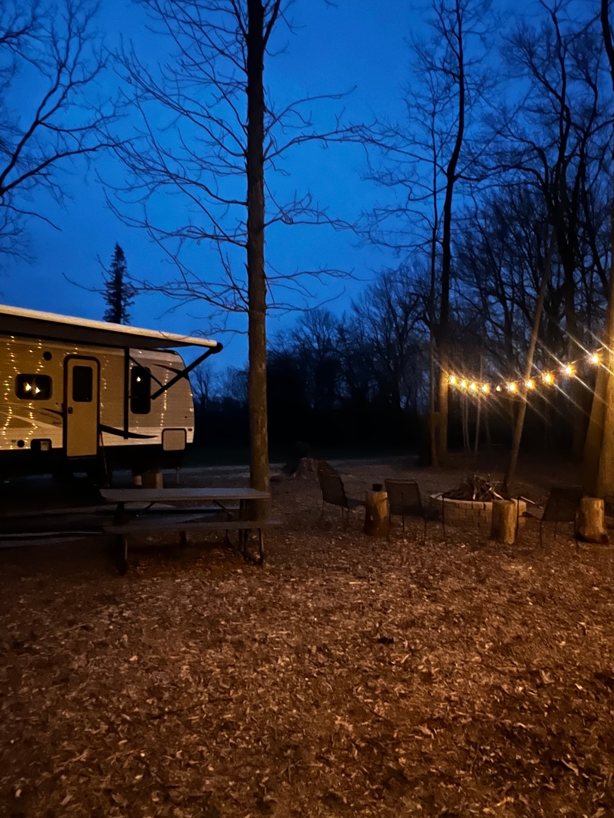 波特兰树林中的舒适复古露营车。