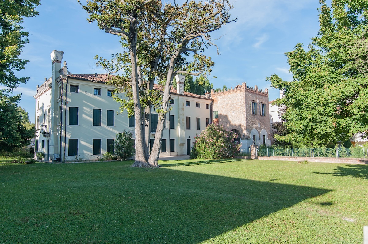 The rooms were built inside the recently restored Roncade Castle Tower. Each room is equipped with a private bathroom, air conditioning, heating and Wi-Fi. Breakfast is included. The Castle is located in a quiet country village 15 minutes from Treviso and 30 minutes from Venice, 30 km from the beaches and served by public transport. Inside, there's a winery that sells locally produced wines.