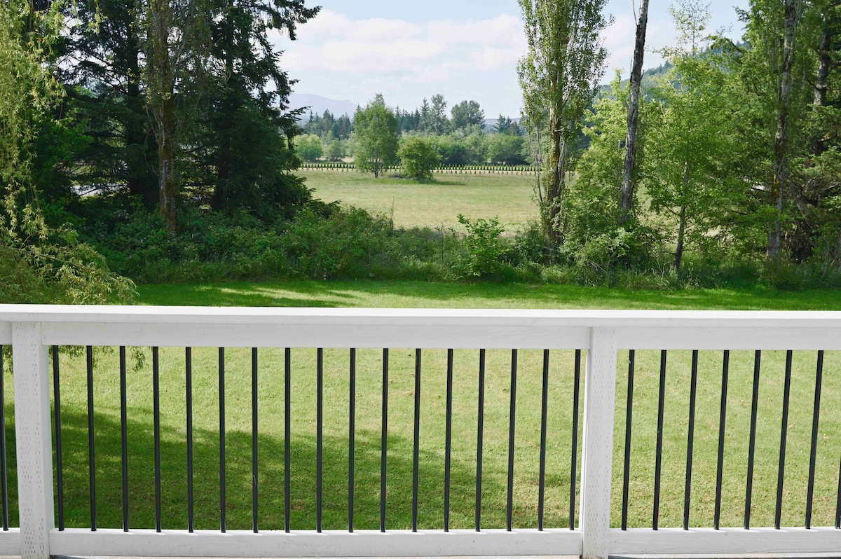 Remodeled 37' fifth wheel makes for a spacious and comfortable place to rest and relax during your stay on the Olympic Peninsula! Beautiful view of our Olympic mountains! Just blocks from the Olympic DiscoveryTrail. You'll be able to enjoy both the sunrise and sunset! Queen size memory foam mattress in the bedroom. The Crate & Barrel sleeper sofa is a queen memory foam mattress. We have an HVAC ductless unit for comfortable temperature control all year round. Electric fireplace for ambiance.