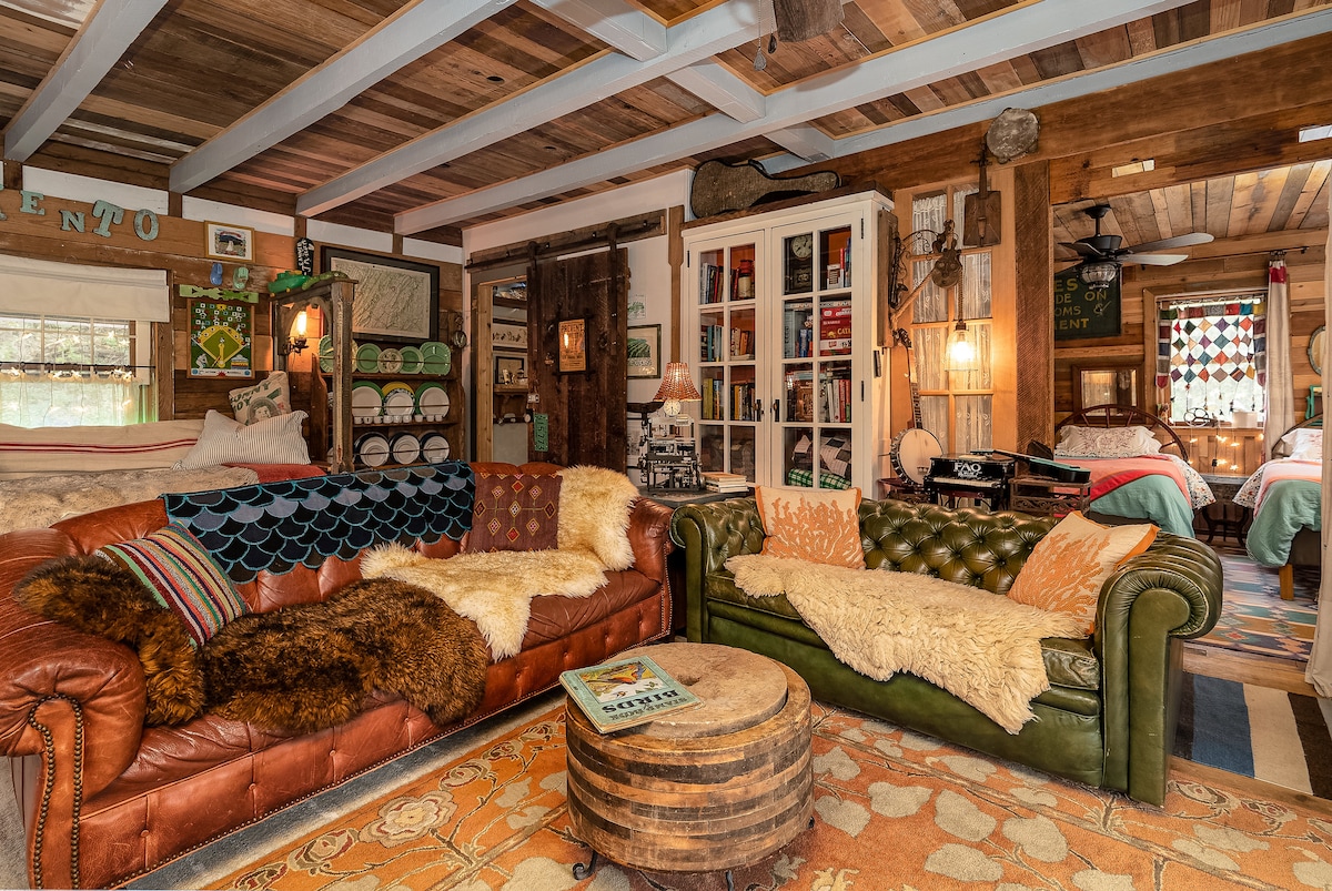 Picturesque mid-century cabin...with your own private riverfront! (As seen on Magnolia Network 'Cabin Chronicles'). Boasting a magical view of huge forest trees and 300 feet of river frontage - enjoy a tastefully curated interior with luxury modern appliances & fast wifi. Soak in the incredible views on our expansive deck with a glass of wine, light a campfire on the private pebbled beach. Enjoy fishing/swimming right from your front door! @rivercabaan | rivercabaan . com