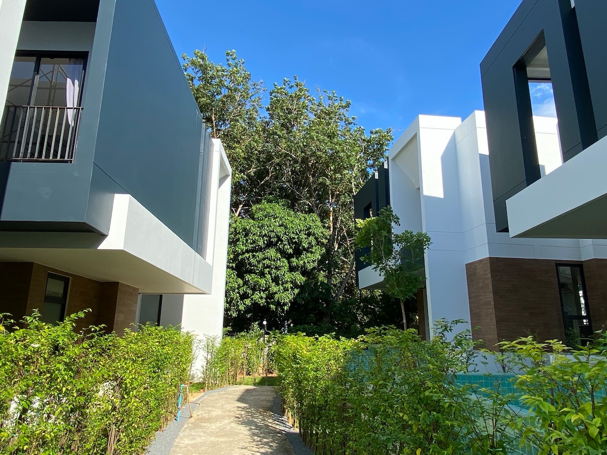 现代泳池别墅2卧室3卫生间免费班车前往海滩