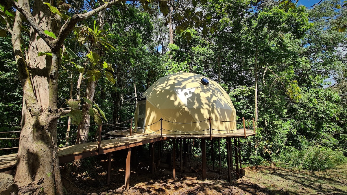 The Suave Vida Dome offers you its openness with a large bay window and skylight surrounded in Costa Rican Nature at its purest. You will feel emerged to the views of the Jungle and valley. Enriched with stylish furniture and decor themed to bring raw elements of nature inside the living area. You will find yourself in tranquility with the sounds of nature and the running stream. The Dome offers an adventurous and a little of a daring experience making it a unique luxurious glamping getaway.