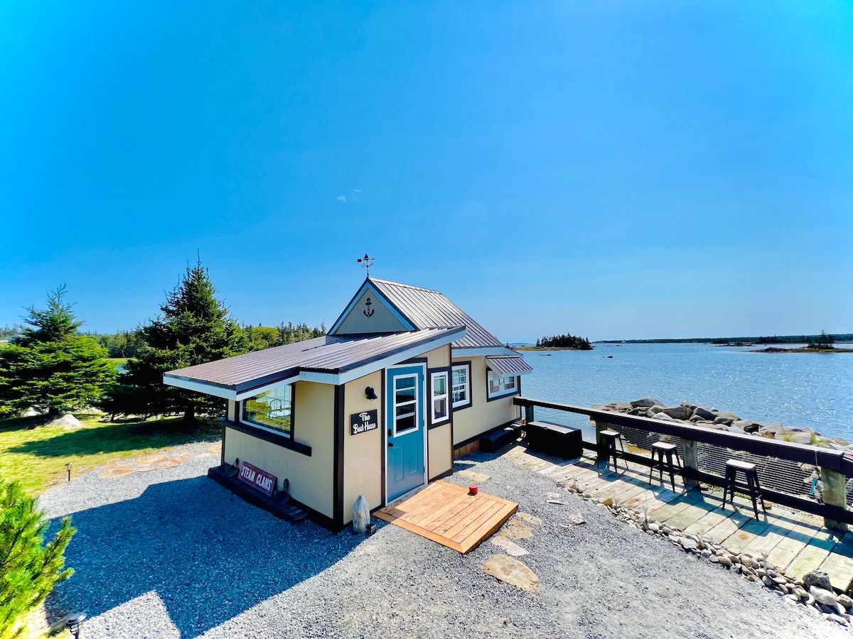Welcome to The Boathouse! Conveniently located in the Municipality of Barrington, known as the Lobster Capital of Canada. Unwind at this uniquely built, rustic cabin situated next to the ocean. At high tide, you will wake up to the sound of waves splashing beneath your window. Enjoy the beautiful views from the outside decks or take a kayak and explore. The wildlife is all around. When night falls sit back and relax at the fire pit as you look out on the ocean. Enjoy your stay!
