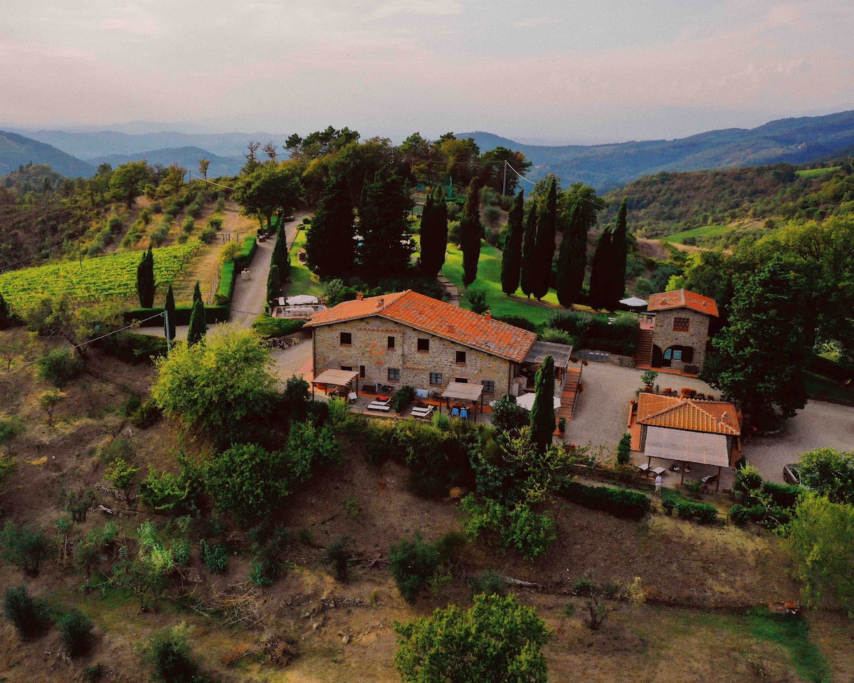 Agriturismo Il Colle is located on one of the Chianti hills. The property has been completely renovated, overlooking the Chianti valleys and enjoying splendid views of the surrounding hills and the city of Florence. The apartment is completely independent, on two internally connected floors, and features a private garden lined with centuries-old oaks and Tuscan cypresses. The restoration maintained the original Tuscan architectural style of rural barns.