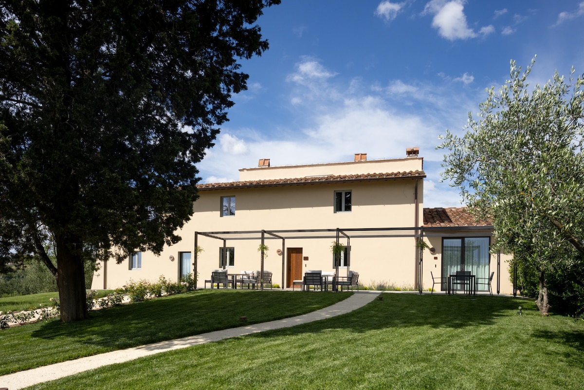 ‘Il Fienile’ is in an enchanting position immersed in the beauty of the Tuscan hills, with a breathtaking view of the surrounding countryside. It is located in the hamlet of Catignano in Gambassi Terme, just a few kilometres from San Gimignano. The house sits in a protected oasis surrounded by a beautiful private park with olive trees, a pond, pine trees and woods, where you can walk, relax and enjoy the pleasures of unspoilt nature. A unique experience entirely to be enjoyed.
