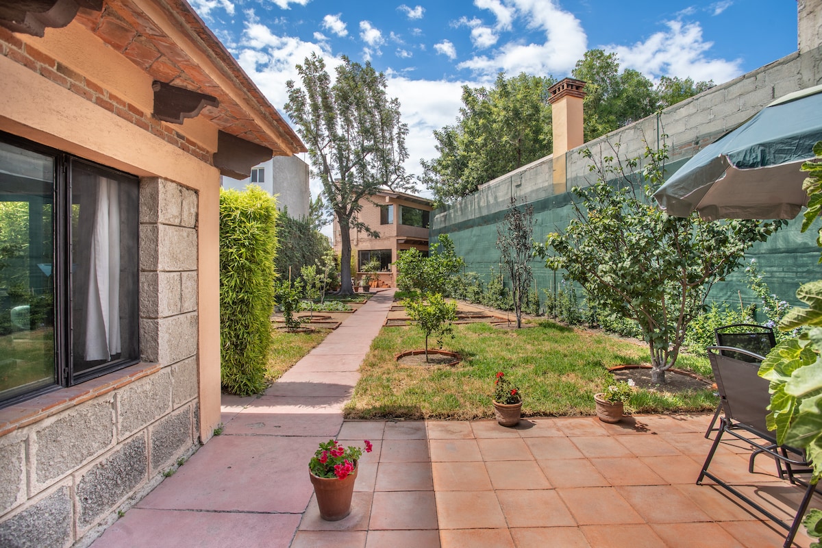 Se renta preciosa suite para una o dos personas en los jardines arbolados de una casa en Tequisquiapan, Qro. Cuenta con cocineta equipada, TV, Netflix y buena señal de internet. Ideal para pasar un fin de semana relajado, hacer Home Office en un seguro y apacible lugar o para personas retiradas que quieran disfrutar de la paz de la naturaleza. Ubicada en el Fraccionamiento Los Sabinos, Tequisquiapan, Qro., a 15 min a pie del Centro Histórico. No aceptamos mascotas.