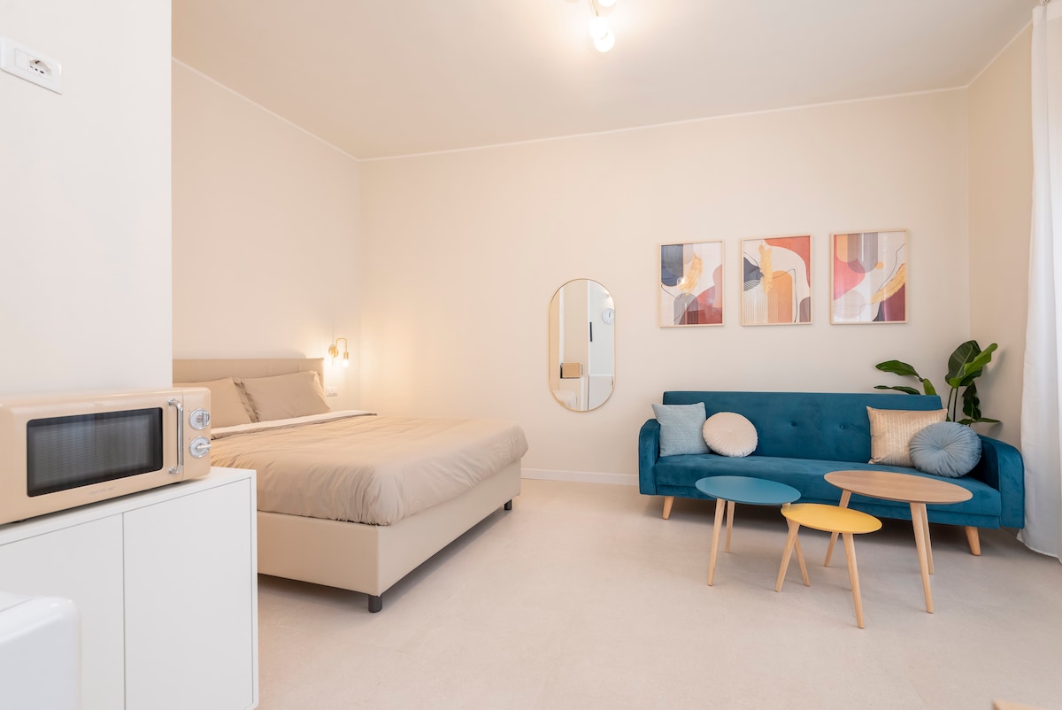 Our cozy Nest in the City is a spacious, newly-renovated studio located in the historic heart of Borgo Palazzo. Just a few steps from the pedestrian area of Borgo Pignolo, it offers easy access to the splendid Città Alta. The apartment is on the first floor of a charming courtyard house, in a quiet and peaceful area of Città Bassa. Well-connected and equipped with all necessary amenities, you will be able to easily reach bars, restaurants, shops, and supermarkets on foot.