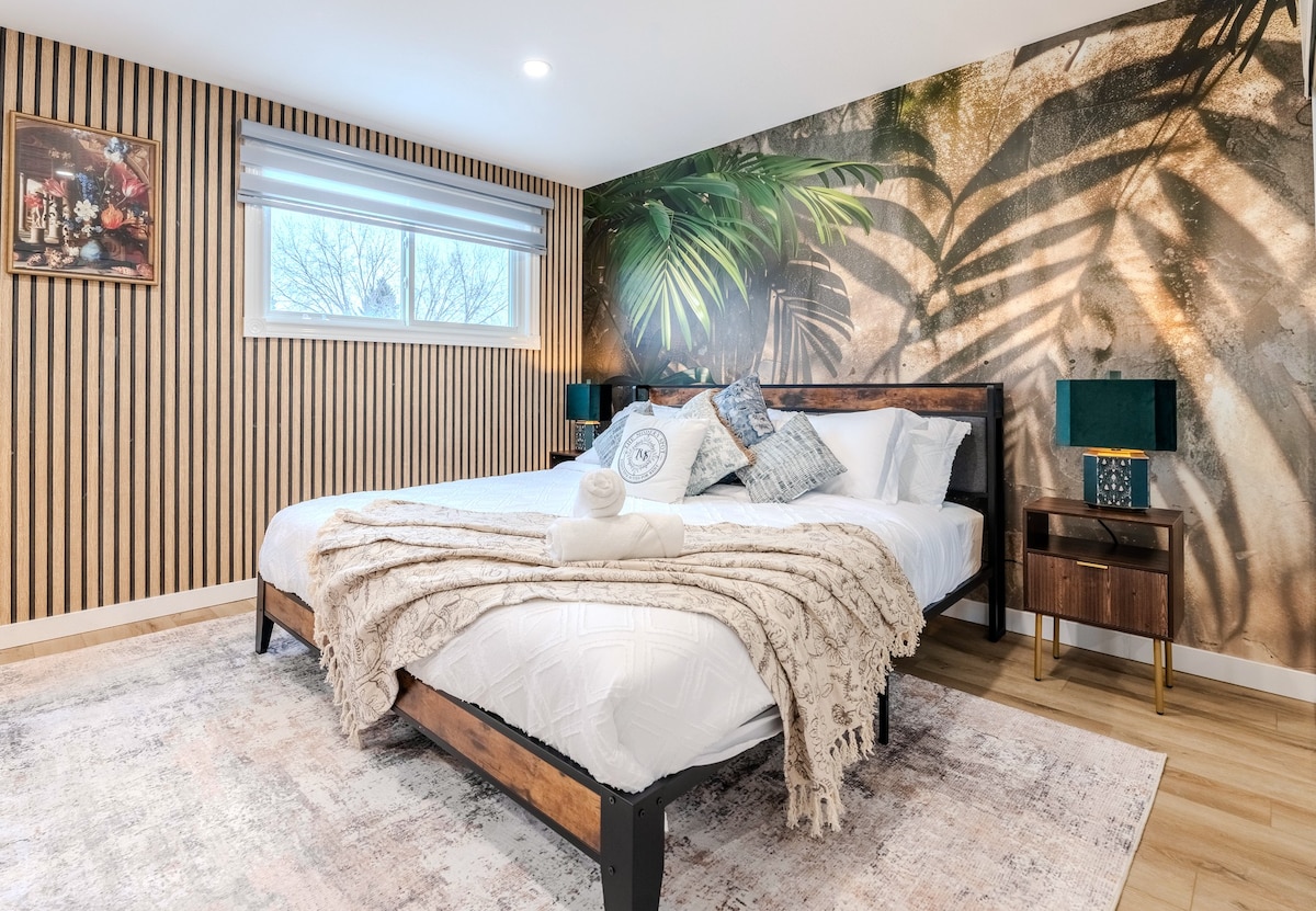 This spacious 2-bedroom suite is located in a safe and quiet neighbourhood close to the perimeter, perfect for anyone driving across the country. It's also on bus routes, a walk away from Sobeys, a bank and a 6mins drive to the famous St Vital mall. Beautifully designed open-concept living room with electric fireplace, dining area and fully furnished kitchen with great space. Both bedrooms have a cozy queen-sized bed. 1 parking available on the driveway.