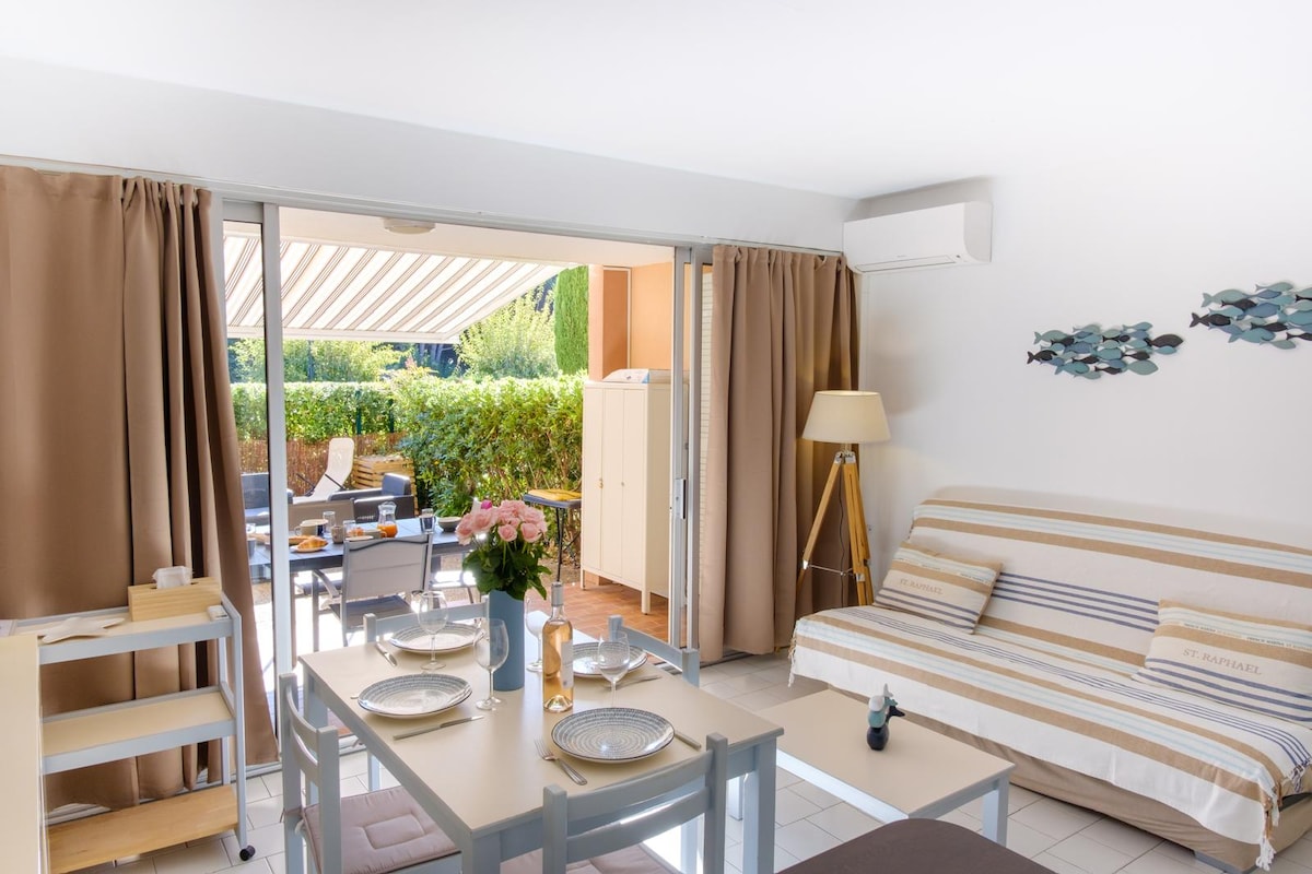 Mon appartement a été entièrement rénové début 2023! Je vous propose de séjourner dans un studio refait avec goût pour vos prochaines vacances dans le sud, à Port Grimaud. Avec vue vue imprenable sur les canaux , vous profitez du soleil dès le matin sur la terrasse puis aurez la possibilité d'aller vous promener et d'accéder à la plage qui est à moins de 10mins (800 mètres) à pied seulement de l'appartement. Une place de parking privative vous permettra d'être garé en face du studio.