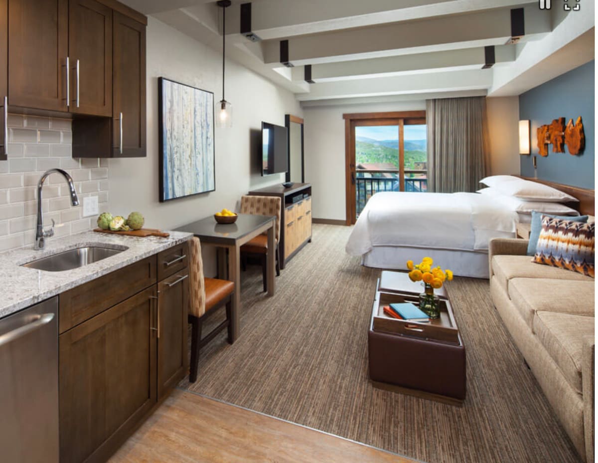 Sheraton Steamboat Resort is a beautiful resort with amazing amenities. This is a studio unit that can accommodate up to 4 guests. It’s a perfect ski vacation spot for guests. Please send an inquiry to check on availability. This is a gorgeous vacation destination and very child friendly. You will enjoy the charm, grace and Sheraton’s famous meticulous attention to your vacation experience. A family ski paradise destination!