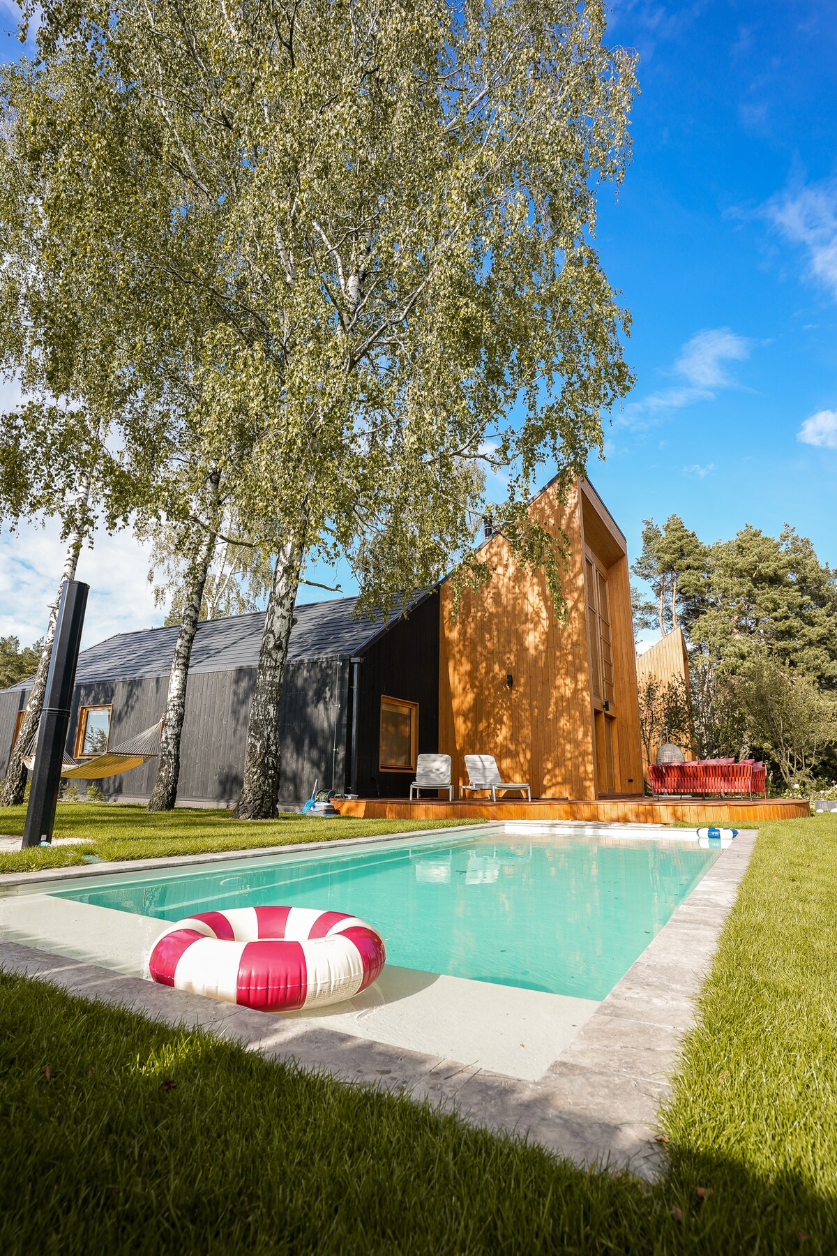 Nowoczesna rezydencja o powierzchni 110 m², położona bezpośrednio nad jeziorem, idealna dla maksymalnie 8 osób. Udogodnienia w ofercie obiektu:4 sypialnie i 2 łazienki Przestronny salon z panoramicznym przeszkleniem i widokiem na jezioro. W pełni wyposażona kuchnia . 3 tarasy z zestawem wypoczynkowym dla 8 osób Pięknie zaprojektowany ogród. Prywatny pomost Udogodnienia za dodatkową opłatą (sezonowo): Basen zewnętrzny podgrzewany, Jacuzzi, sauna, Rowery elektryczne , SUP elektryczny + kajak,