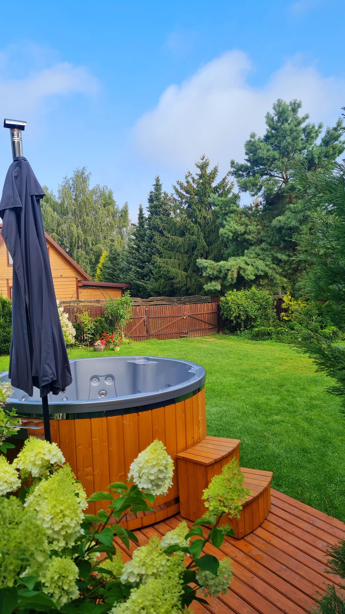 Cosy wooden house with private beach, jetty, rowing boat and fantastic view of the lake and surrounding trees. Finished to a high standard, 2 bathrooms, 4 bedrooms, living room with fireplace, fully equipped kitchen and large terrace, all designed having comfort and satisfaction of our guests in mind. On the fenced plot around the house, apart from a bonfire place with handmade benches and comfortable hammocks, you can find a lot of green space enabling all kinds of family recreation and relax.
