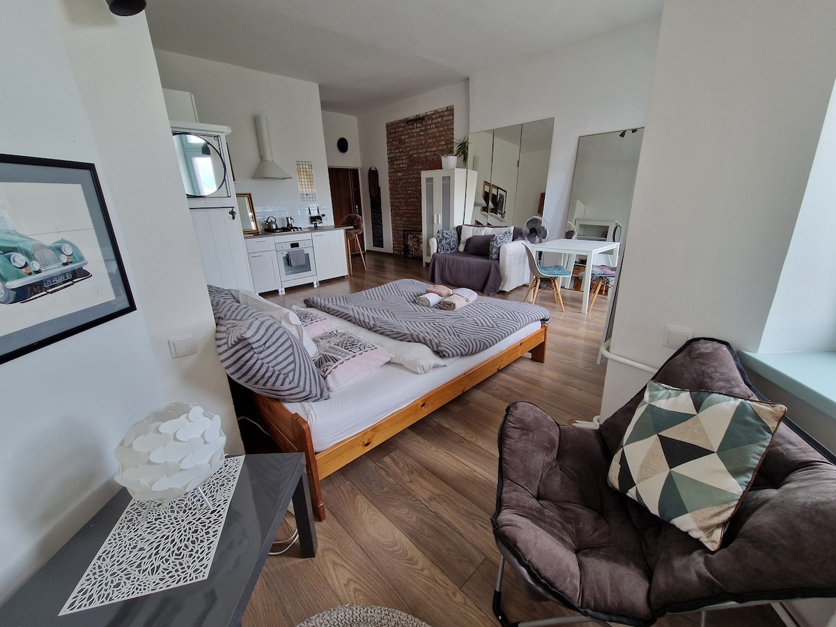 带阳台的“Kamienica”工作室。中心。床+沙发