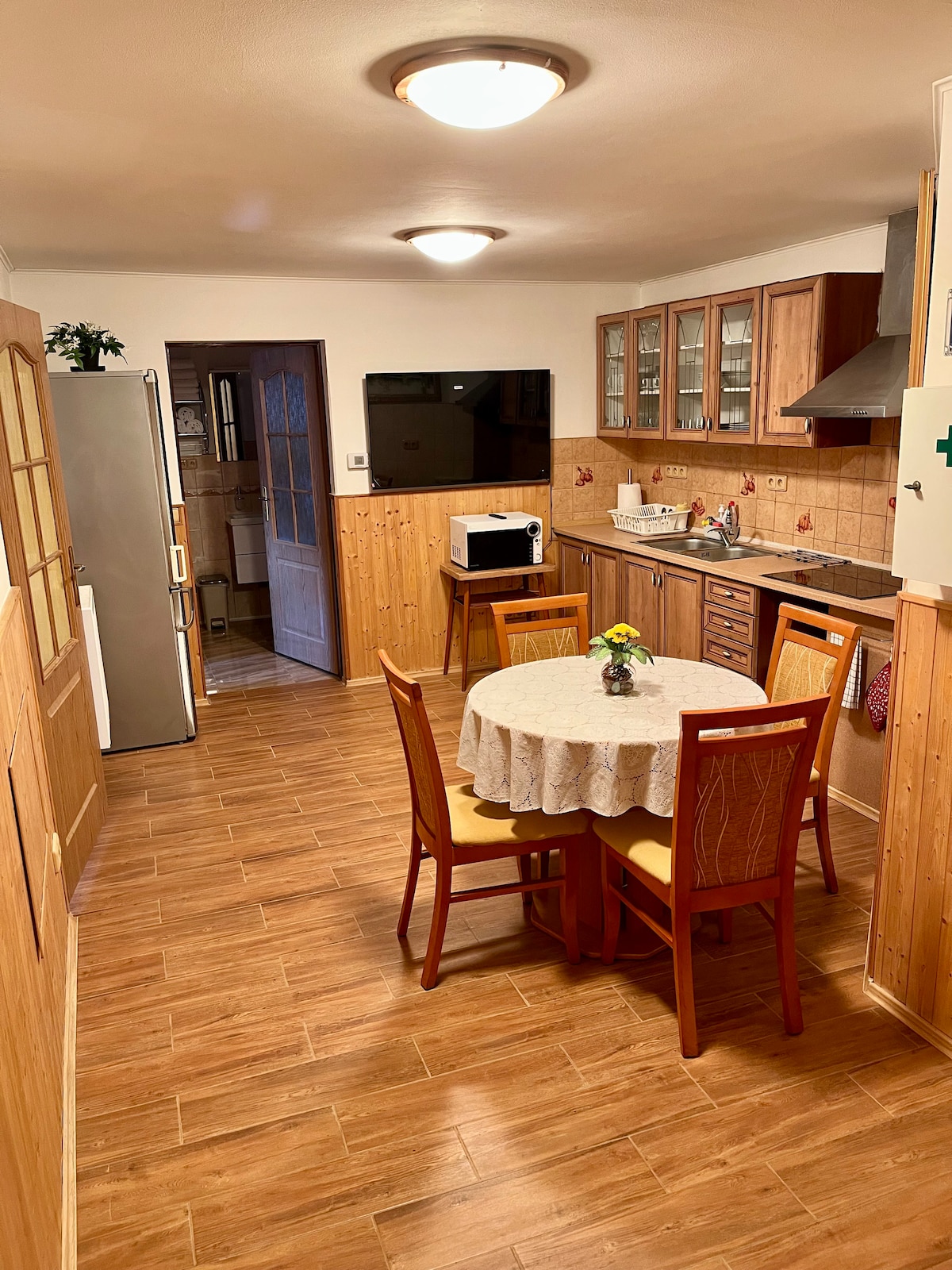 Escape to a tastefully renovated historical cabin. Warm up in the wood-fired sauna, then cool off in a natural pond. Enjoy the sound of the waterfall, forest, and nature all around. Relax by the window with a crackling fire. Luxury comforts include a Bowers & Wilkins sound system, a fully equipped kitchen upcycled from old wooden doors, and a bathroom with heated floors and a rain shower. Perfect for a romantic stay or remote work with a pull-out Dell monitor. Just 30 minutes from Prague.