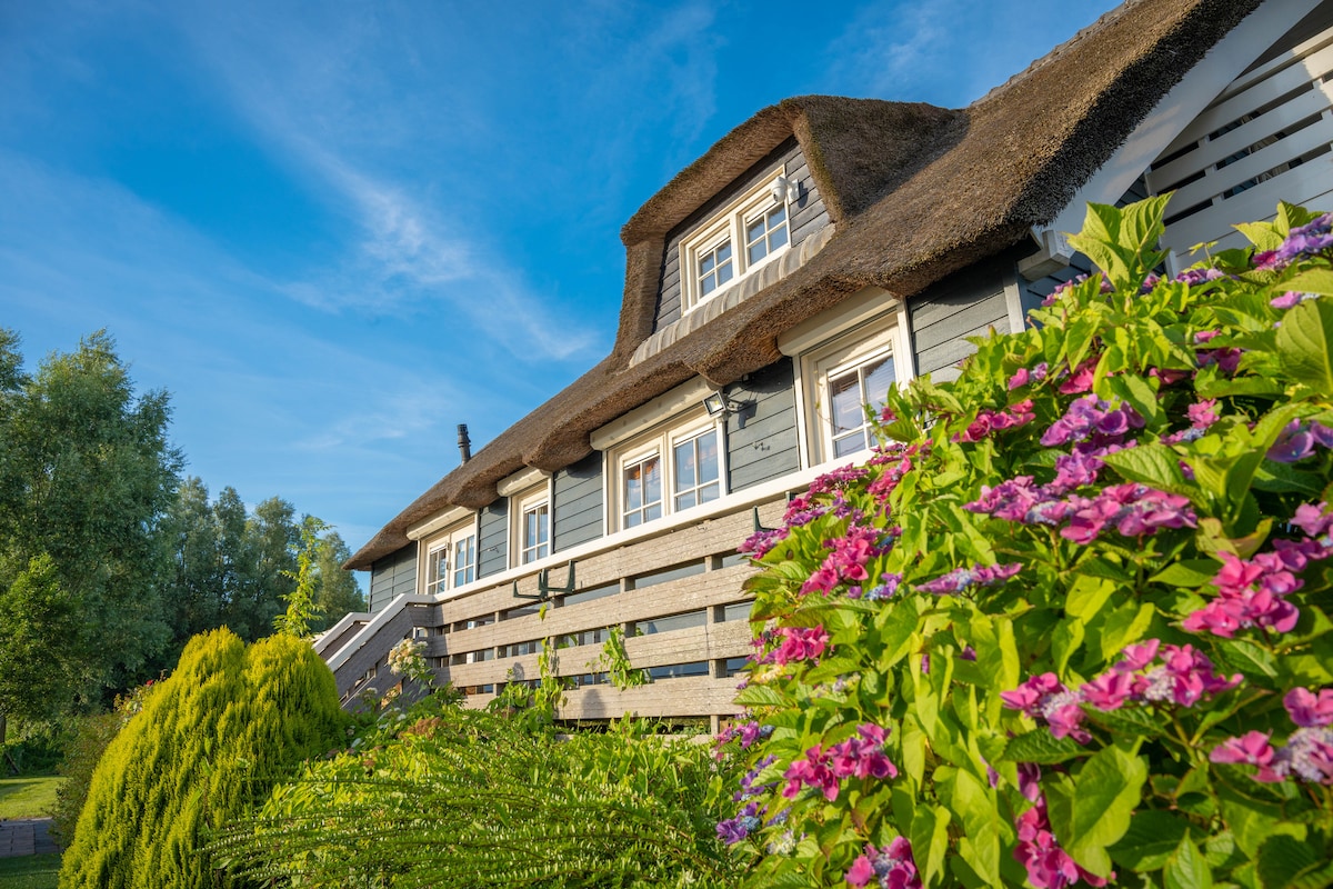 SUITE PLOMPEBLAD GIETHOORN Thatched farmhouse. Located in the most beautiful location on the village canal of Giethoorn. A private residence and private terrace on the water. Suite Plompeblad has a beautiful classic and rural interior, downstairs with a luxurious design bathroom with bath and walk-in shower. Upstairs a spacious room with king-size box spring and on the split level a complete kitchen with induction hob and dishwasher. With rental of an electric boat right outside the door!