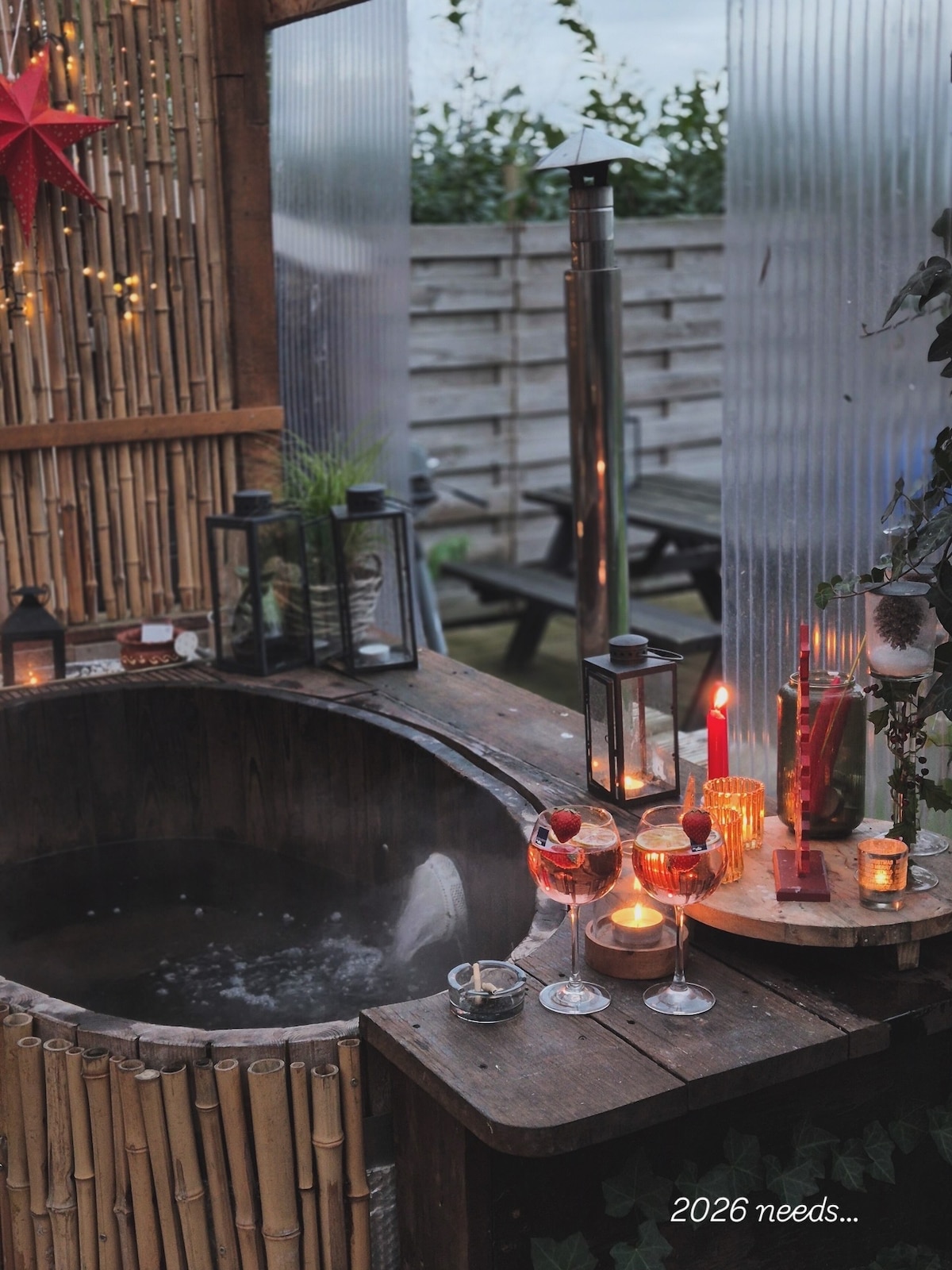 Welcome to our self-built vintage wooden wagon with an easy plug & play hot tub, a spacious veranda with terrace heating and a beautiful view. There is also a BBQ, a fire pit and we have hammocks! Fancy a little phone detox? Get inspired by a book from our personal collection or enjoy one of the many games and puzzles. See you soon? ps. follow our world trip -> ByBohemies ! Love, ByBohemies