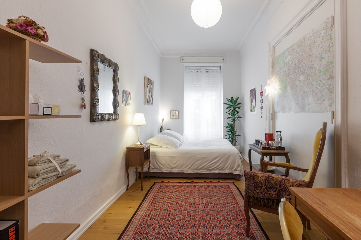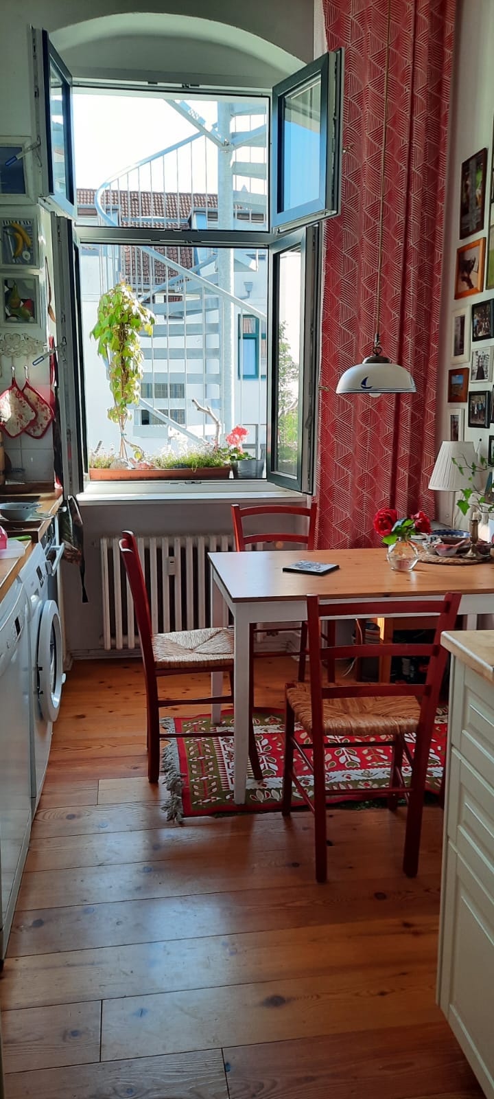 Situated on the fifth floor, this airy and light-flooded one-room apartment offers everything you might need for your stay like a freshly renovated kitchen and bathroom and an excellent public transport connection. The apartment has one double bed and two single beds. On request, there's a foldable baby bed available. Please be aware, that there is no elevator in the building. There is free parking available closeby. This place serves as a safe space for every person. 🏳️🌈 🏳️⚧️