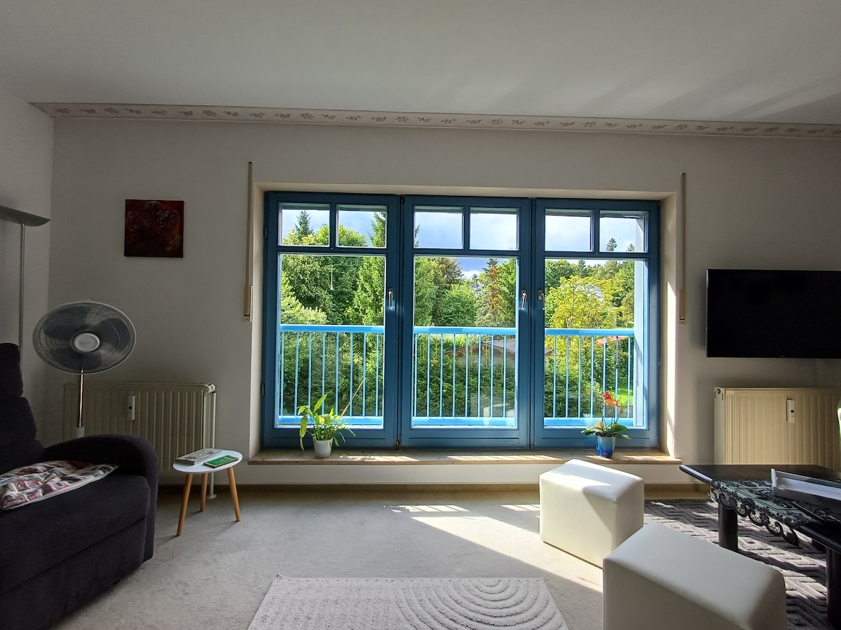 Meine sehr gut ausgestattete Wohnung ist ideal für 2 Personen, falls nötig ist ein weiterer Schlafplatz schnell auf dem ausziehbaren Sofa im Wohnzimmer gerichtet. Auf unserem SMART-TV stellen ich Euch NETFLIX zur Verfügung, für Regentage und eholsame Abende auf dem Sofa :) Ich wohne ruhig, direkt am Wald, wo wunderschöne Wanderwege beginnen. Für Geschäftsreisende ist eine ausreichende Ausstattung vorhanden. 1 Reisekinderbett sowie 1 Hochstuhl stehen für einen kleinen Gast bereit.