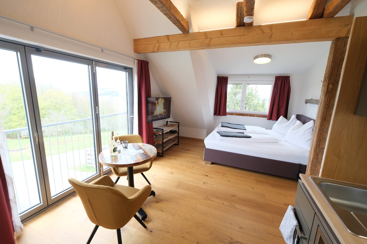 Deine Auszeit für zwei in der Wohlfühloase am Trausdorfberg: gemütliches Natur-Apartment mit großer Glasfront und französischem Balkon mit Blick ins Grüne. Unser Hof mit Hühnern & Schafen und herzlicher Atmosphäre lädt zum Entschleunigen ein. Sauna & Whirlpool exklusiv nutzbar dank Reservierungssystem. Nachhaltig gebaut mit Naturmaterialien, Genussoase mit regionalen Produkten am Hof. Zwischen Graz und der Thermen- & Genussregion Südoststeiermark – perfekt für Ruhe & Genussmomente.
