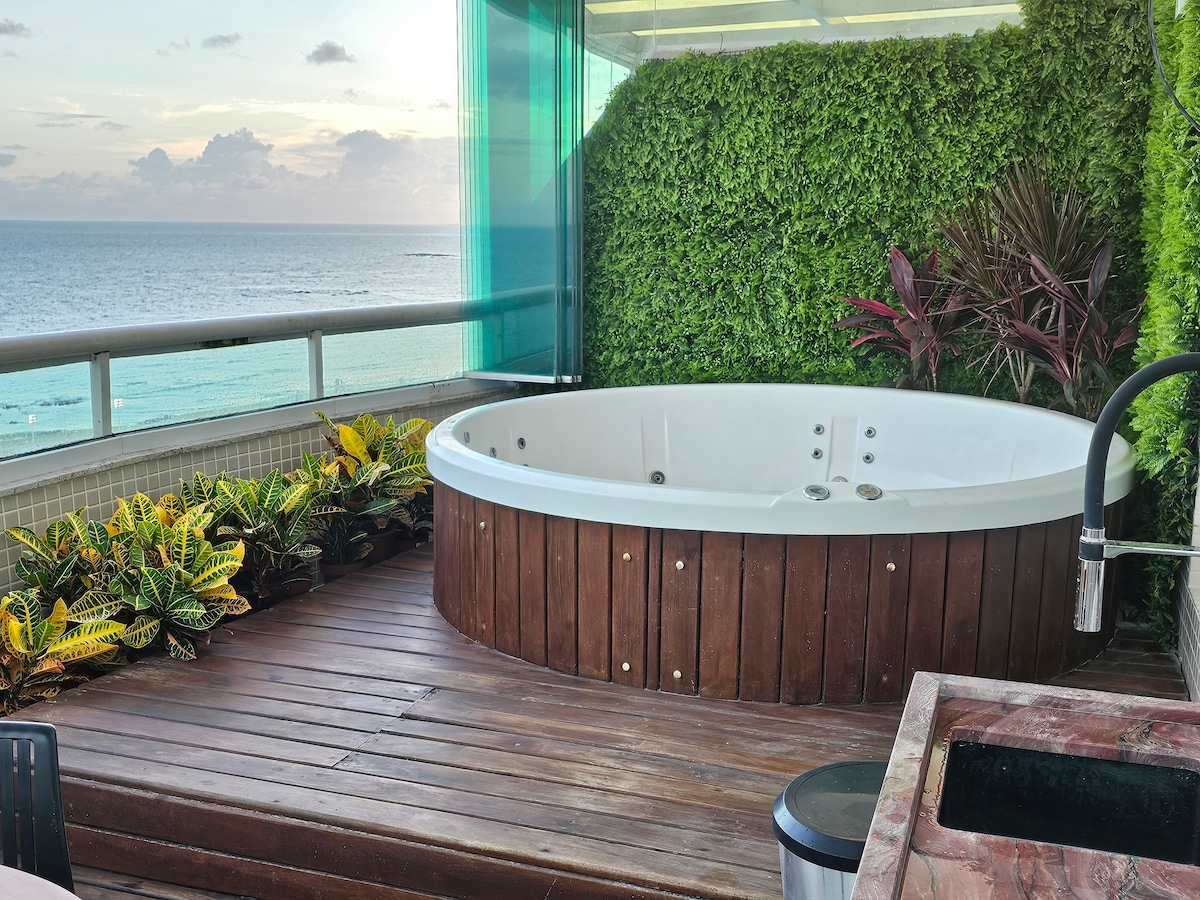 Para pessoas exigentes! Desfrute de momentos inesquecíveis no "Paradise View", em Salvador. Apartamento novíssimo, vista mar espetacular, varandão com cervejeira, decoração tropical, Smart TV 55, ar condicionados, Wi-Fi 500Mb e cozinha completa. Acomoda 4 pessoas (6 com taxa adicional) com 2 camas de casal e 1 bicama. Edifício com piscina infinita, rooftop, academia, pub, coworking, churrasqueiras, portaria 24h e garagem coberta. Localização perfeita, na praia e a 10 min do aeroporto.