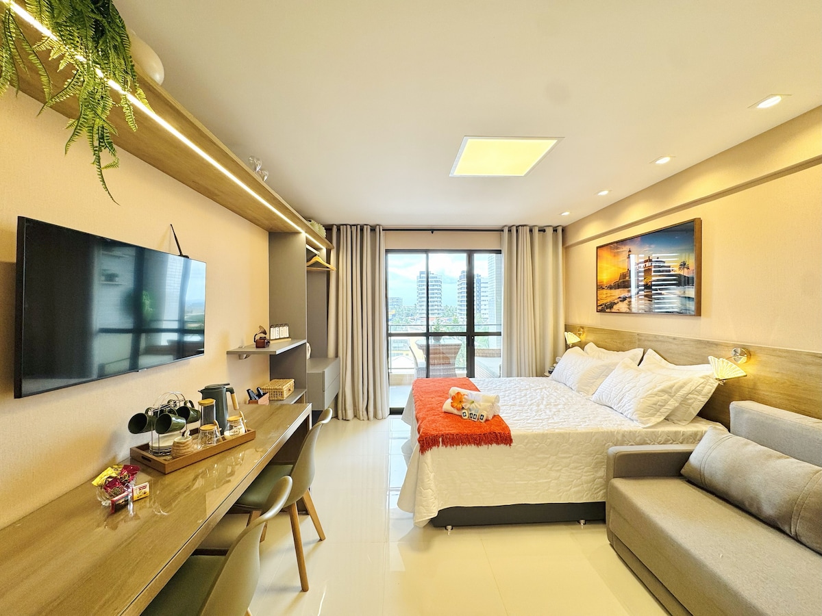 Venha viver uma experiência inesquecível de beleza e conforto. Você pode escolher entre relaxar na varanda com magnifica vista mar, fazer um churrasco e contemplar o pôr do sol na piscina ou caminhar poucos metros até a praia. Precisa trabalhar durante sua estada? Conte com nossas salas de coworking. Não quer interromper os treinos? Temos uma academia nova e bem equipada. Localização privilegiada, 15 minutos do aeroporto, mercado na esquina, belas praias, restaurantes, bares e praças.