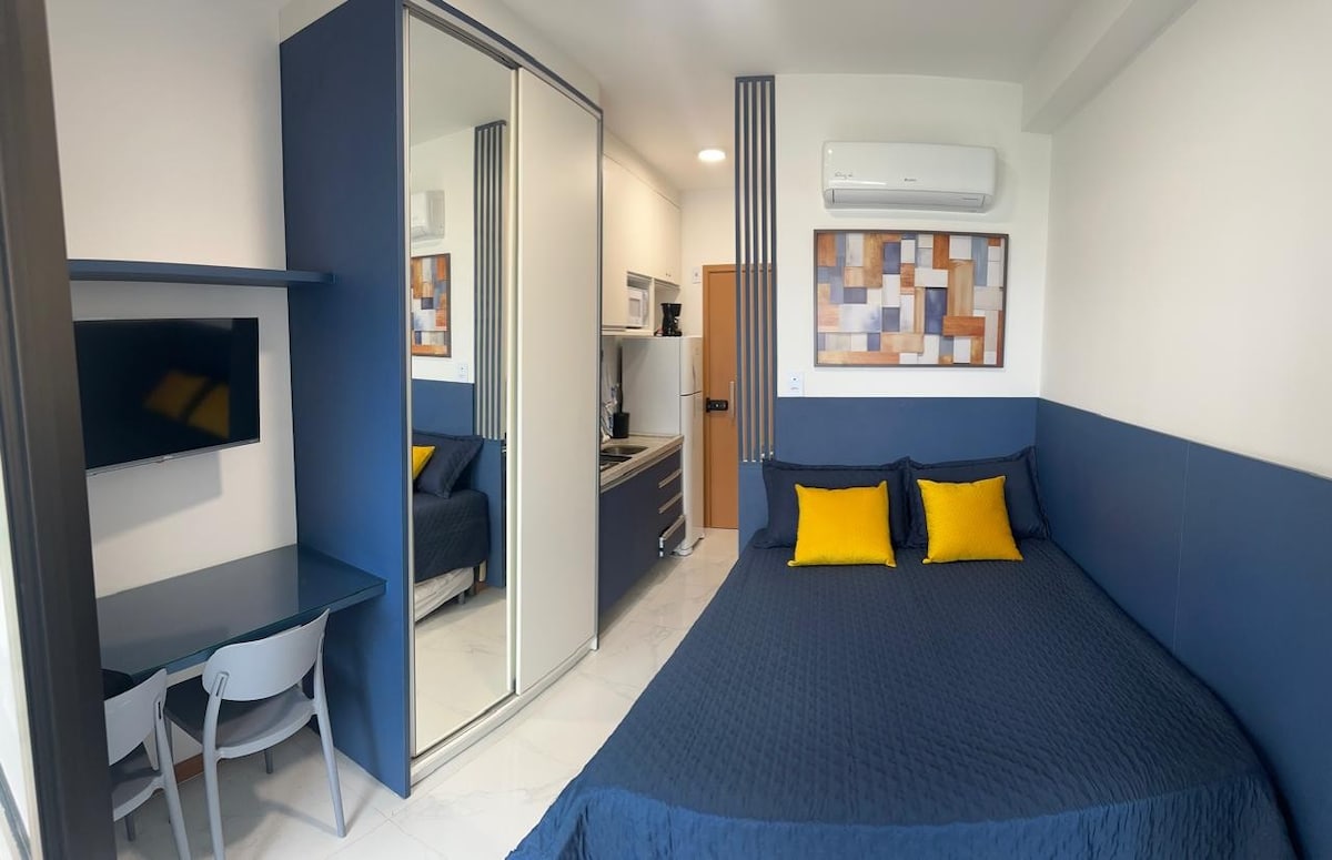 Comfort and spectacular view in Itapuã! In one of Salvador’s most charming neighborhoods, this studio is just a few meters from the beach and offers an unparalleled experience. The space features a double bed, sofa bed, Smart TV, air conditioning, and a fully equipped kitchen. Enjoy the sea view from the balcony and take advantage of the excellent condo amenities: pool, gym, coworking space, and more. A perfect location for those who want the best of Salvador. Make your reservation now!
