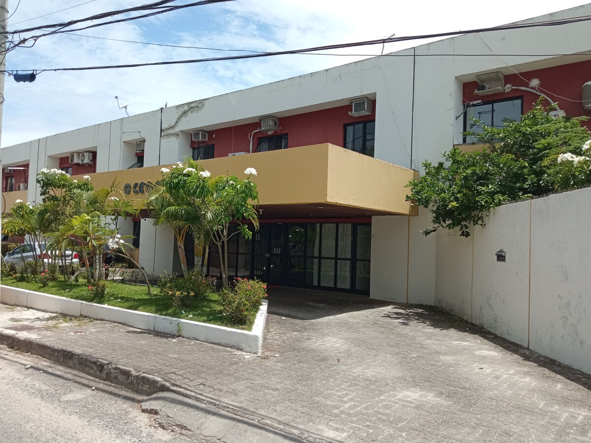 Nosso apartamento possui todo o conforto necessário para a sua hospedagem.Acomodamos 2 pessoas,porém com capacidade para 3,criança a partir de 2 anos conta como 1 pessoa.Deixamos de cortesia 1l de água mineral.Fechadura eletrônica,facilitando o checkin e checkout.(Se não tiver reserva no dia do checkin ou checkout não temos problemas com horário de chegada).8 min do aeroporto e 150 m da praia.Fazemos translado a parte.