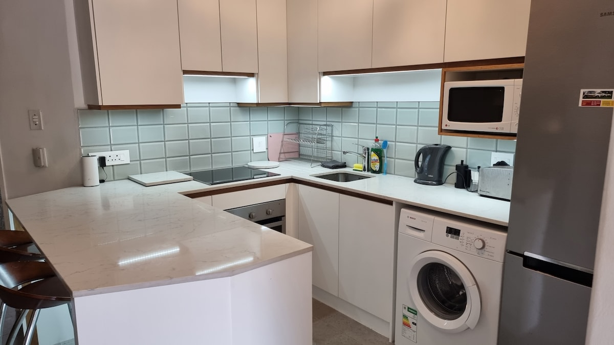 This stylish self-catering apartment can accommodate up to 4 guests with 1 double bed & a super comfy sleeper couch. Located in the absolute centre of Stellenbosch, you'll find all amenities, restaurants, bars and souvenir shops right on your doorstep. This is the perfect home base for solo travellers, couples, friends or small families visiting our beautiful town This unit offers 1 allocated basement parking bay