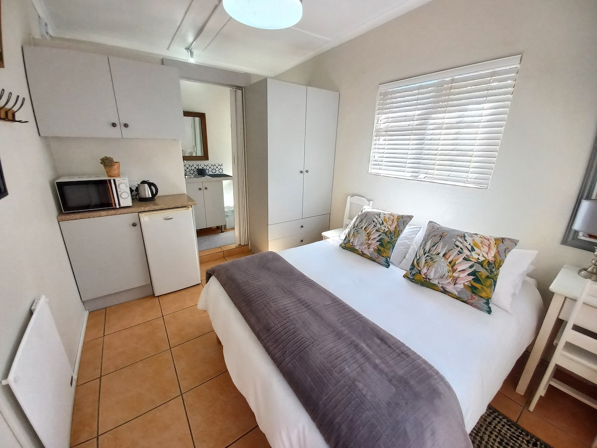 Quiet, safe and comfortable Room En-suite bathroom with shower and bath Kitchenette Private entrance Own security/alarm On-site parking Breakfast included. Large pool and serene garden available for use by guests Approximately 1.5 kilometres from the centre of town with many restaurants Approximately 2.4 kilometres from Stellenbosch University Campus Uber readily available Hosts available for local travel, entertainment and tourist guidance