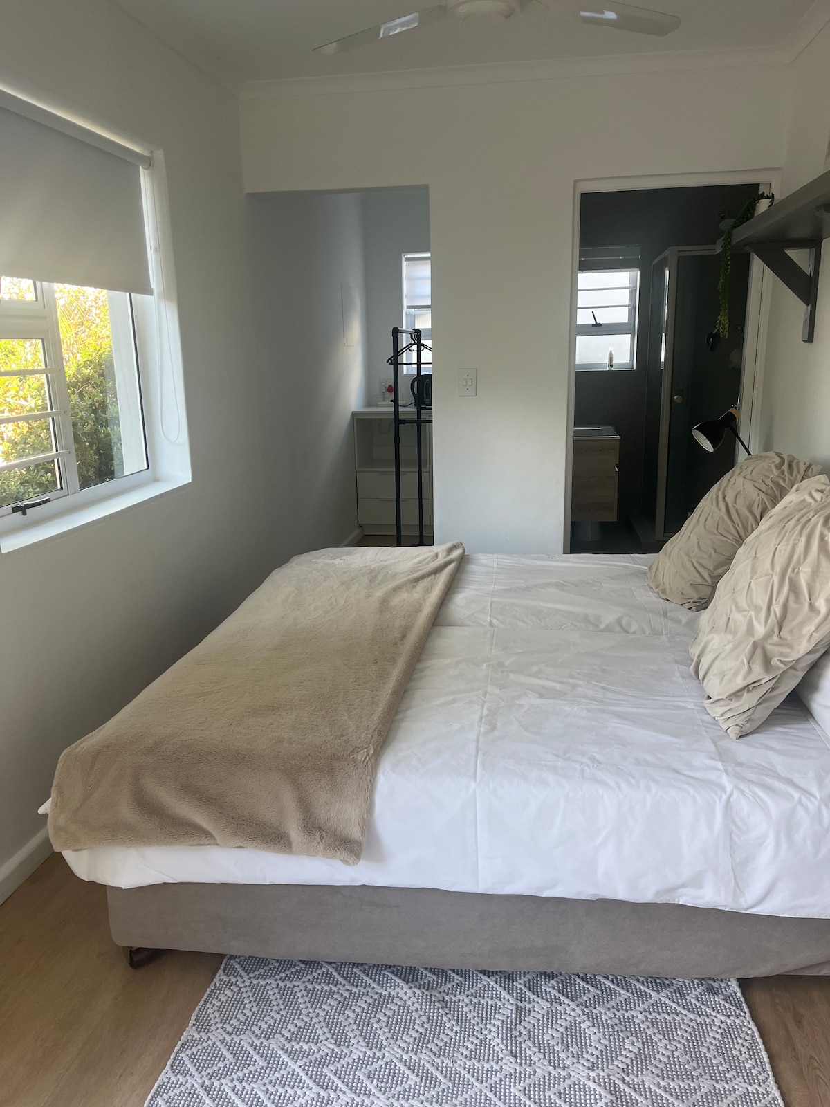 Enjoy a peaceful stay at this centrally-located garden cottage. The cottage is very spacious 54sqm, including all the necessary appliances for those that prefer a longer stay. Beulah's cottage is within walking distance to shops, various trails, hospitals, schools and the golf club. Various wine farms and markets within 5min drive away. The cottage is across a big park which makes it perfect for travelers with kids or pets.