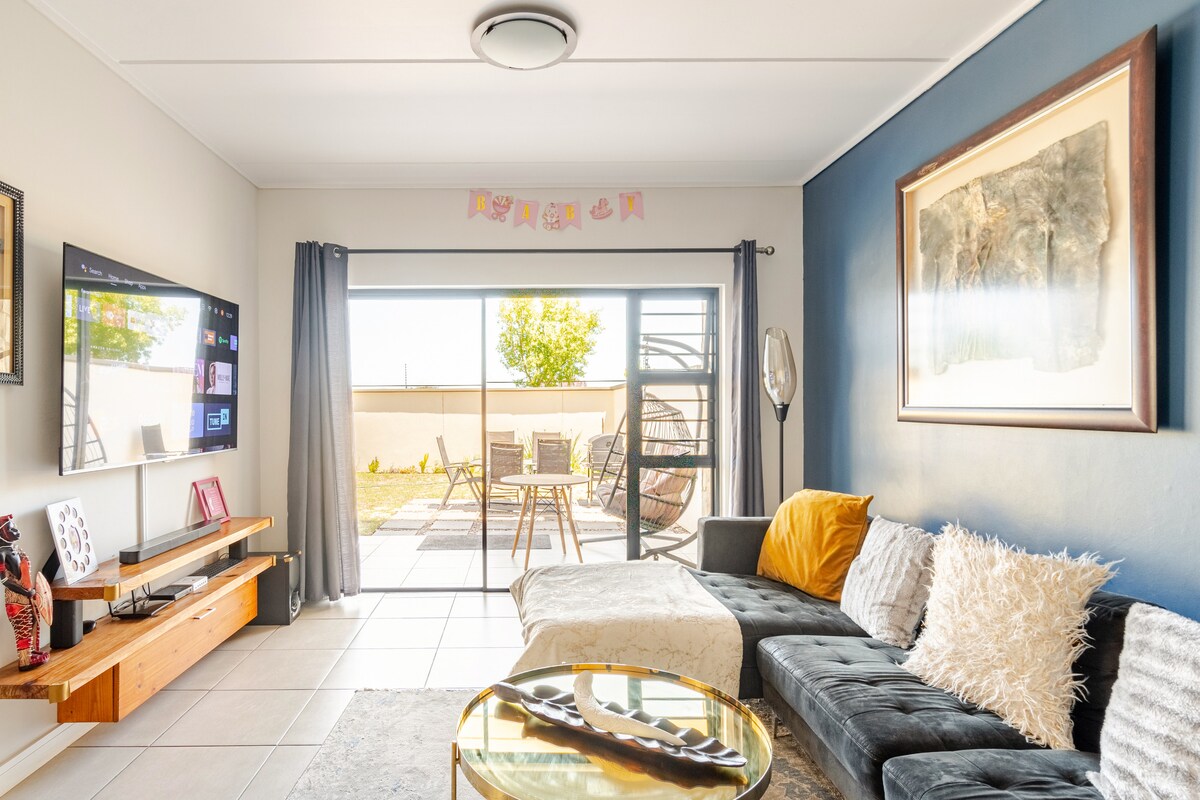 Experience a delightful stay in our private one-bedroom flatlet. You'll have secure parking behind gated access, sharing the driveway with the main house. We're conveniently located within a 5-minute drive of the Durbanville wine route and restaurants, and just a 20-minute drive from Cape Town and the V & A Waterfront. Additionally, the kids' play park, Ipic Play Centre, is within walking distance from our apartment.