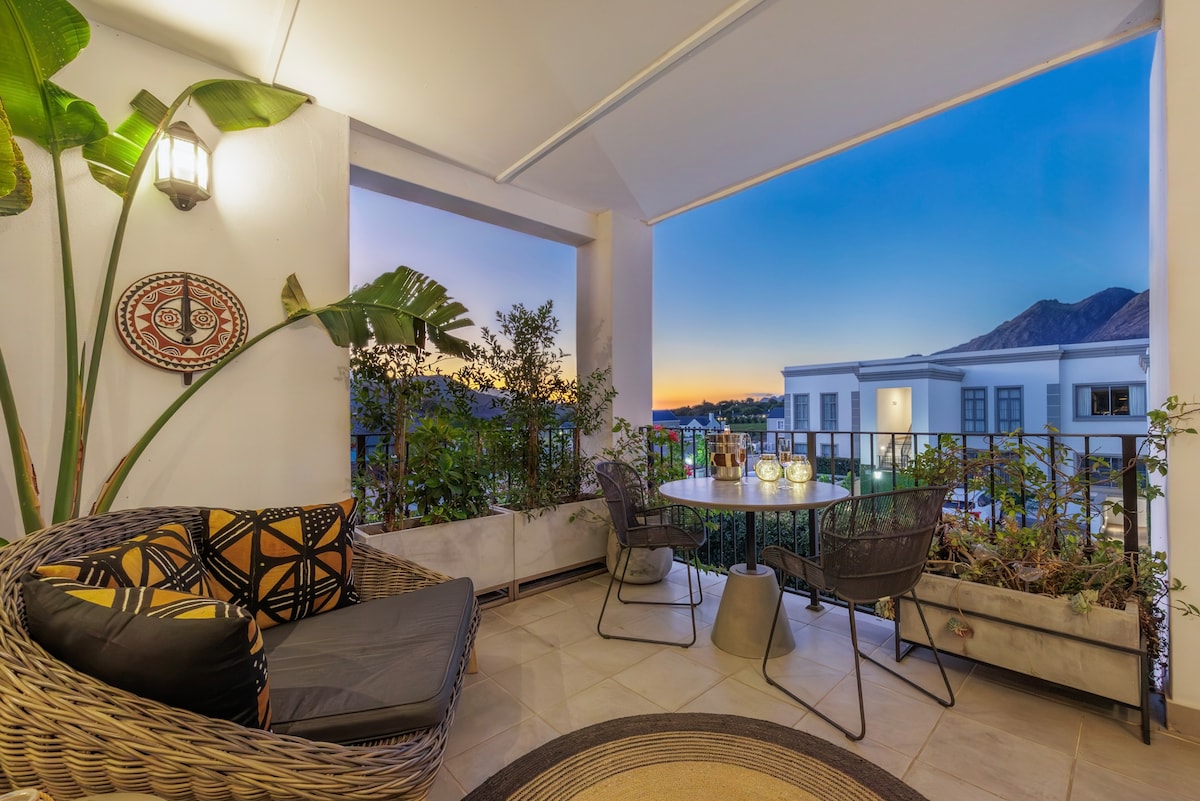 Hochwertig eingerichtetes Luxusapartment für 2 Personen in Somerset West, Bestlage. 10m lange Panoramaglasfront mit Blick auf Berge und Meer. Das Apartment hat Wohnbereich mit Küche, Badezimmer und ein Schlafzimmer. Es steht eine Nespressomaschine zur Verfügung,Toaster, Wasserkocher, Fön, Handtücher und Bettwäsche. Extra langes King size Bett und Fernseher. Pool und Außenanlage sind zur gemeinschaftlichen Nutzung vorhanden und Sauna und Jacuzzi können wir nach Absprache auch anbieten.
